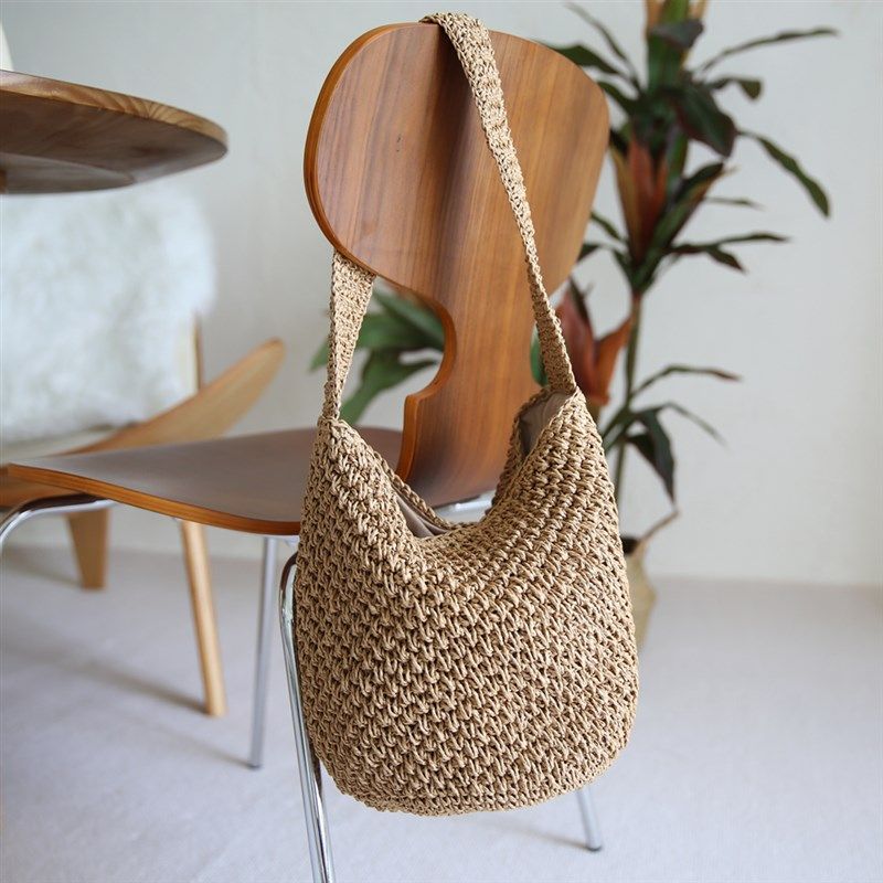 法式 编织包女夏手工手织包包单肩草编藤编草包海边度假沙滩水桶包