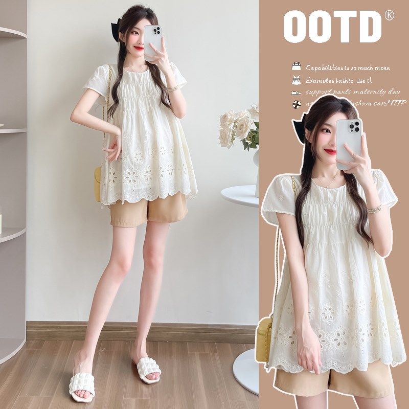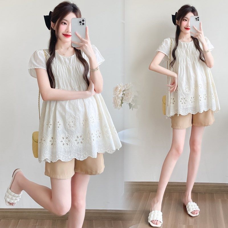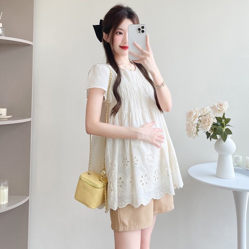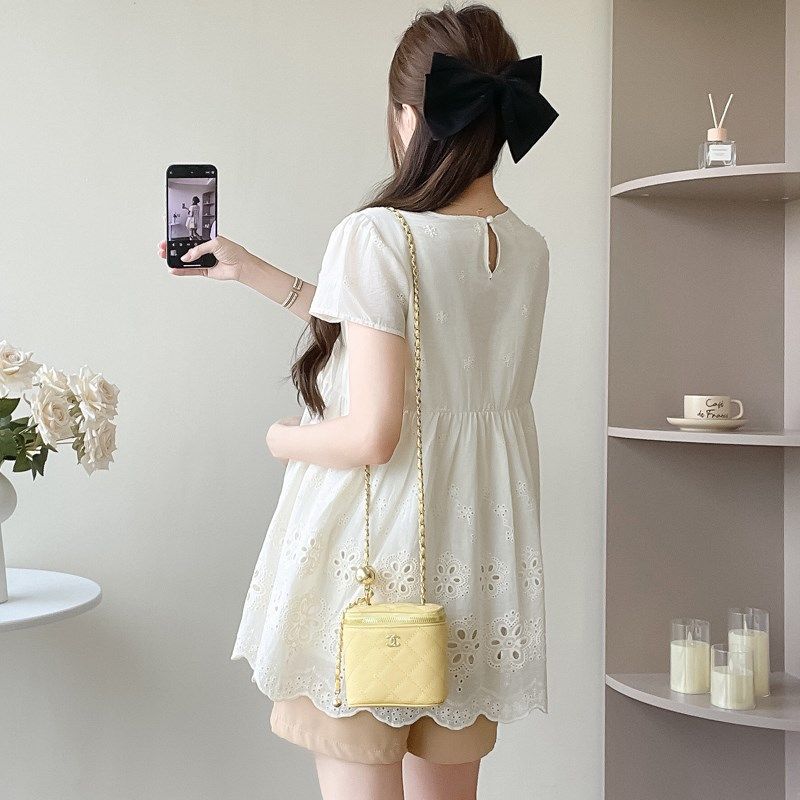 镂空刺绣短袖 时尚 上衣宽松休闲怀孕娃娃衫 夏季 衣服 孕妇装 韩版 夏装
