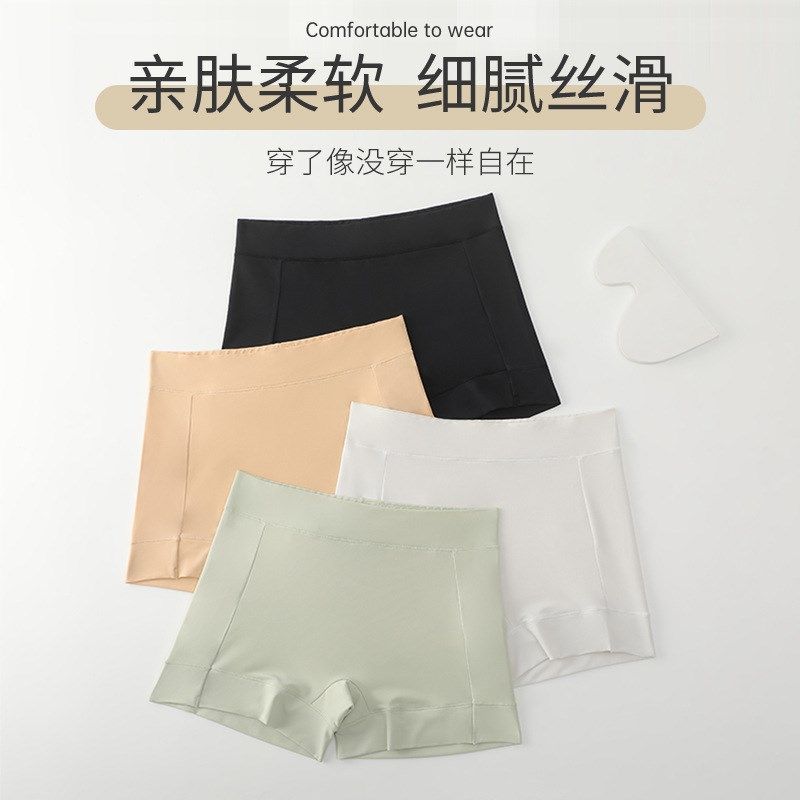 内裤 冰丝无痕安全裤 防走光不卷边黑色提臀夏季 女保险薄款 短 打底裤