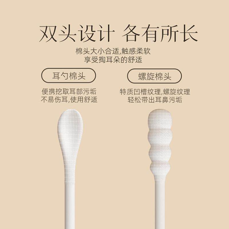 棉签掏耳朵专用不掉毛成人一次性清洁双头黑棒轴挖耳勺棉花屎色纸