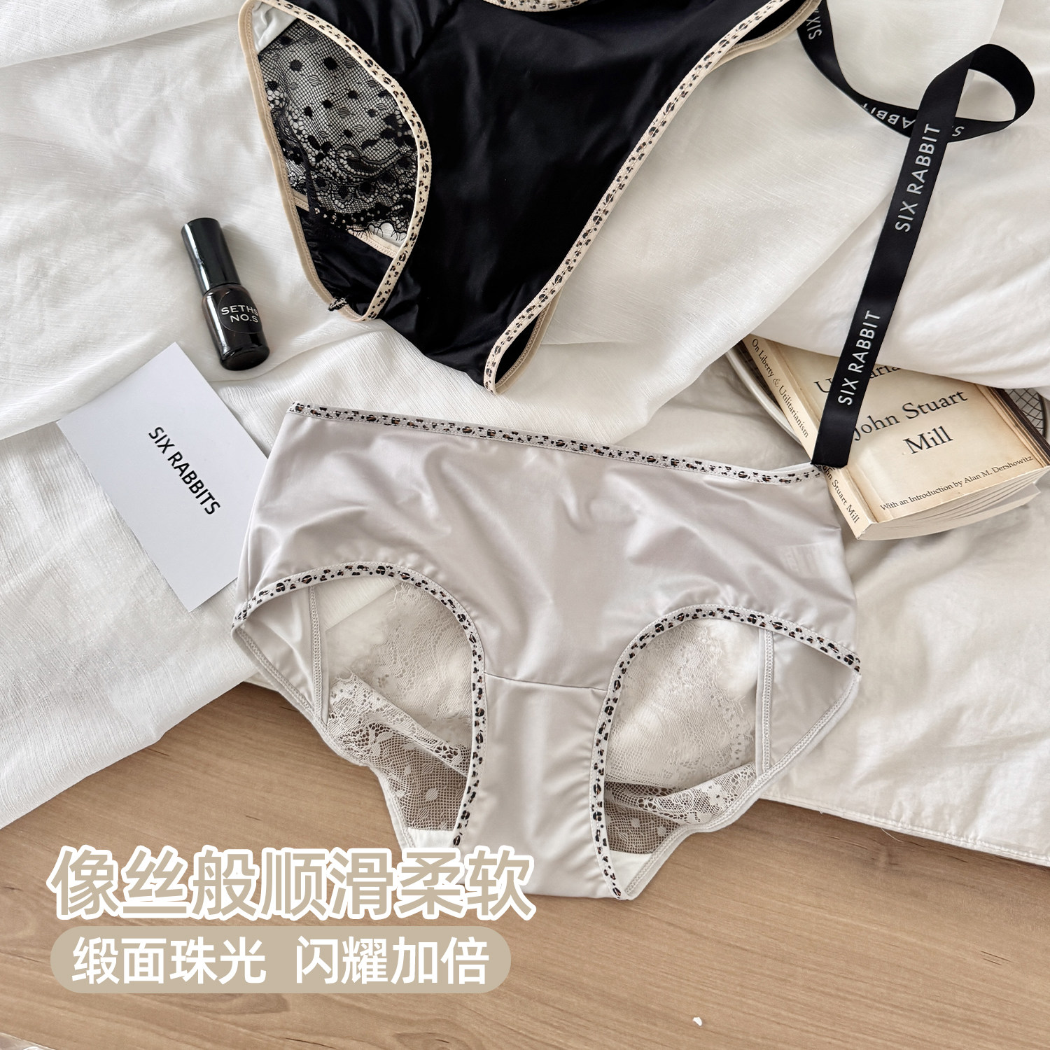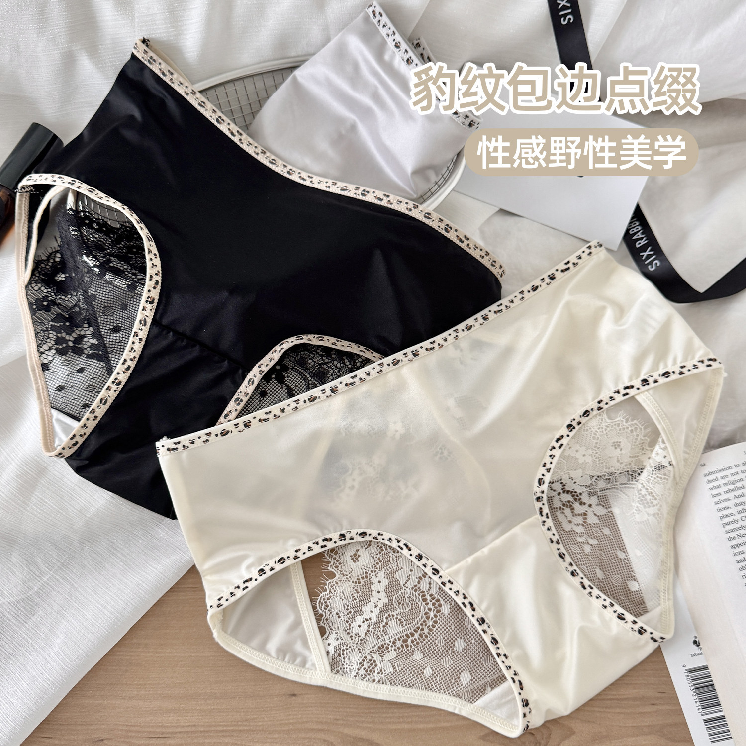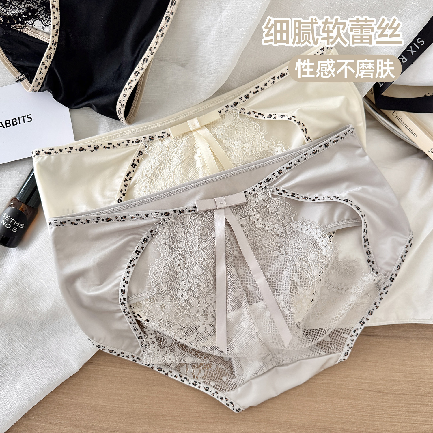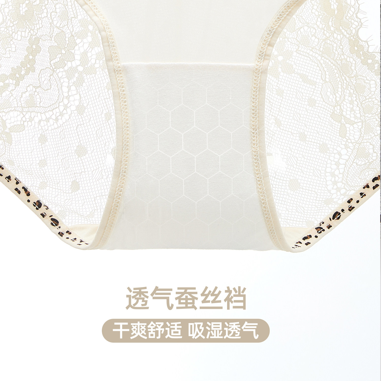 中腰性感豹纹三角裤 六只兔子3条装 桑蚕丝底裆短裤 女薄款 蕾丝内裤
