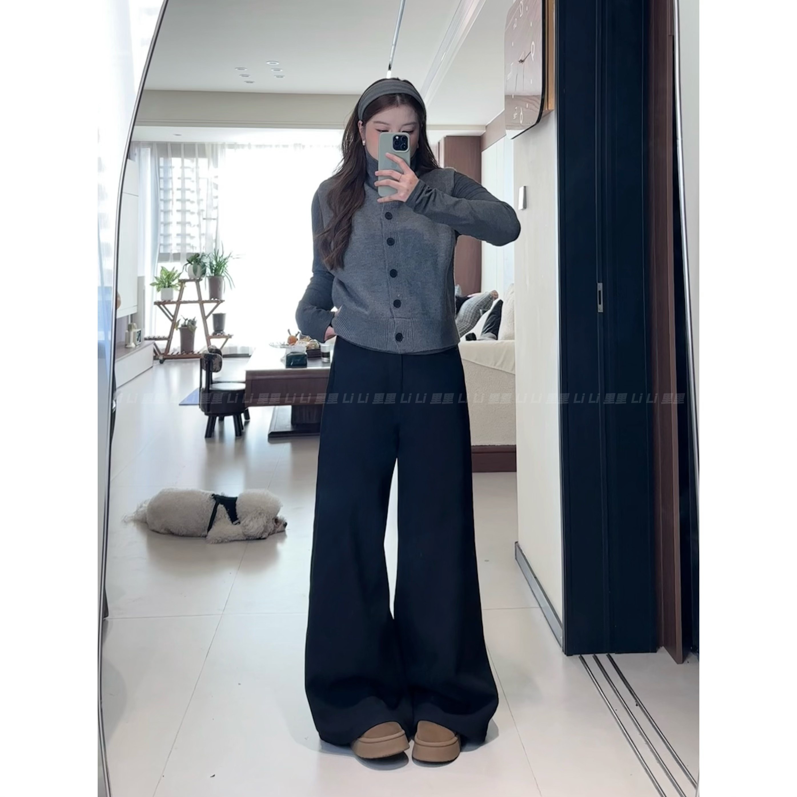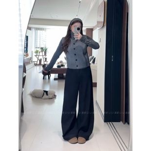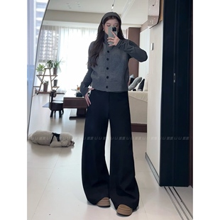 子 女秋冬加绒高腰垂感直筒拖地休闲裤 300斤胖mm大码 雪尼尔阔腿裤