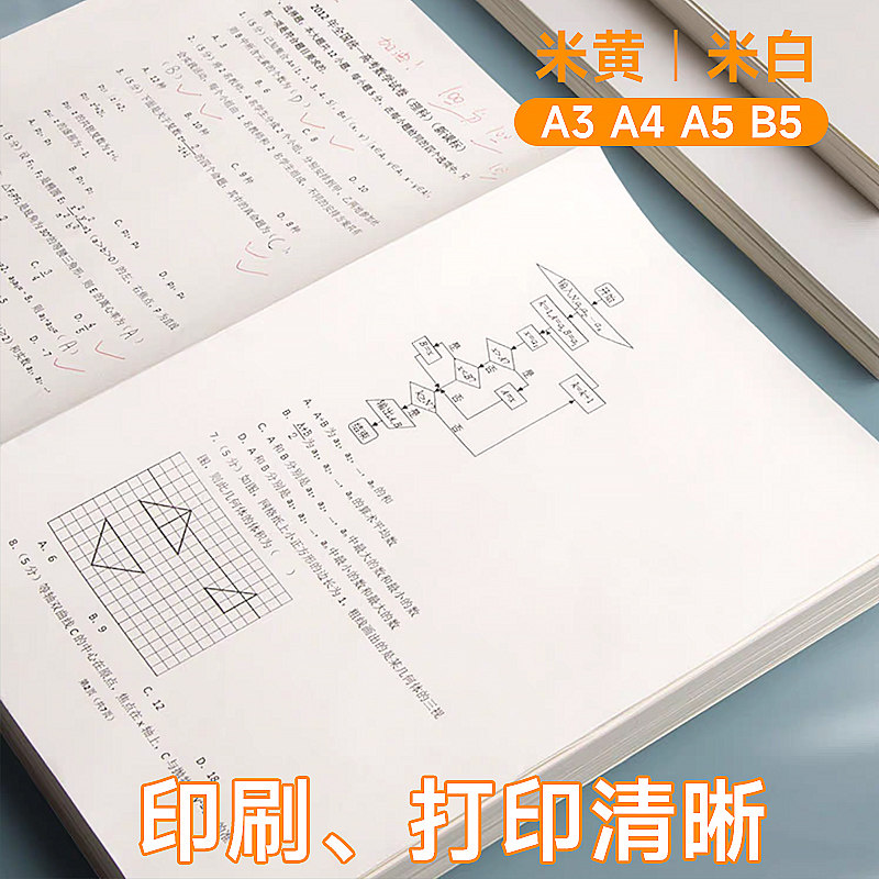 A3道林纸大张书刊米白色米黄试卷打印纸80克100.120.150g加厚A4彩激纸合同文件简历护眼笔记本内页绘画画纸