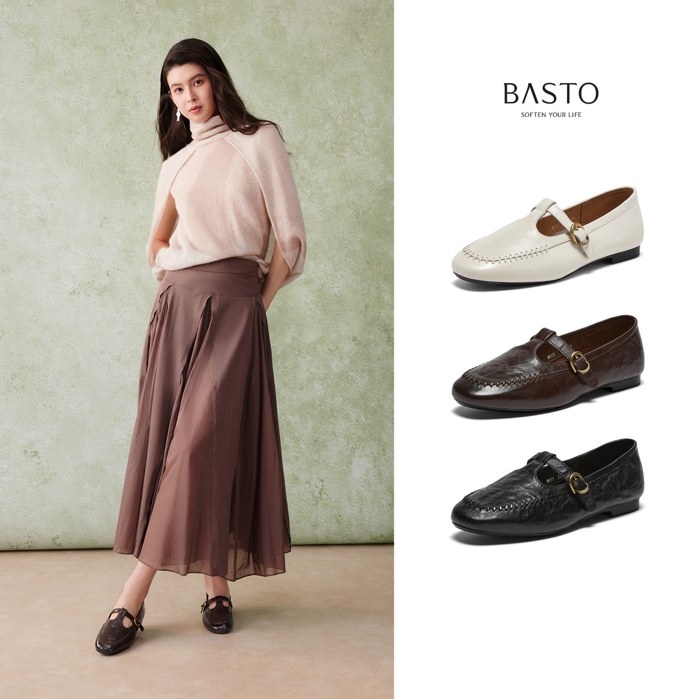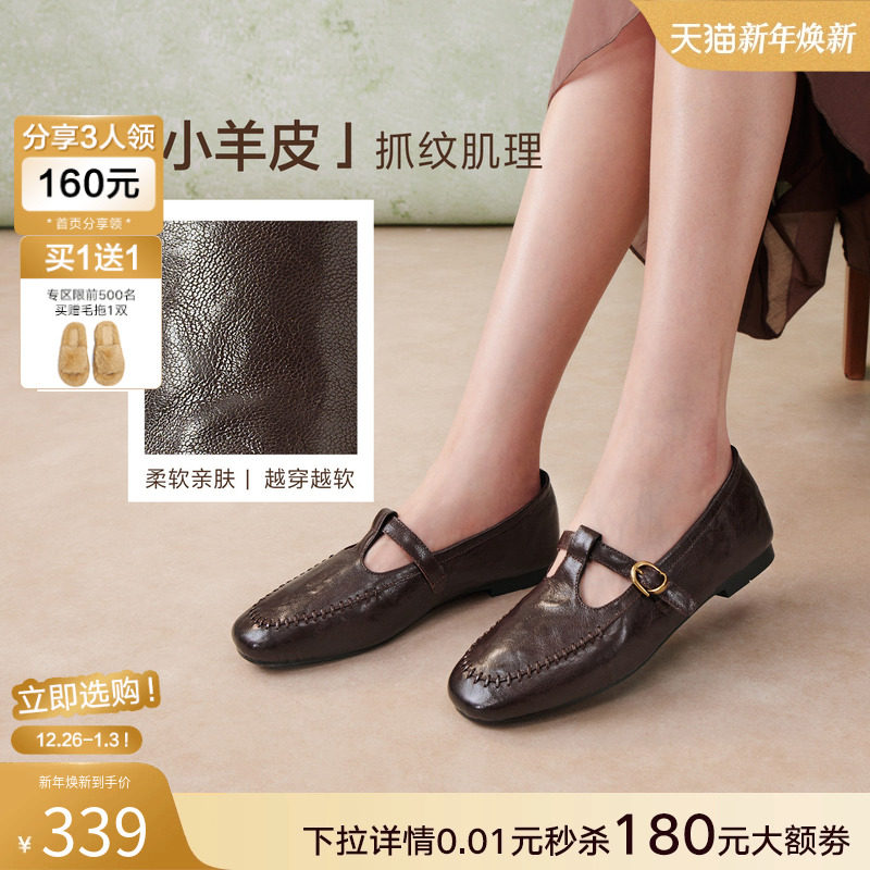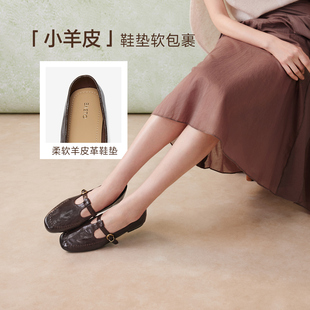 女单鞋 百思图2026春季 玛丽珍鞋 超软羊皮英伦乐福鞋 WW173AA6 新款
