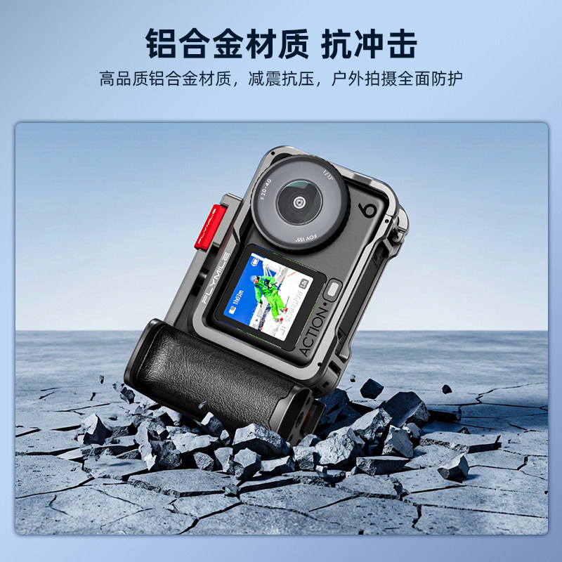 Flymile适用大疆Action6街拍手柄套装 action6金属兔笼街拍套件拓展边框冷靴快门按键保护壳配件 运动相机osmo