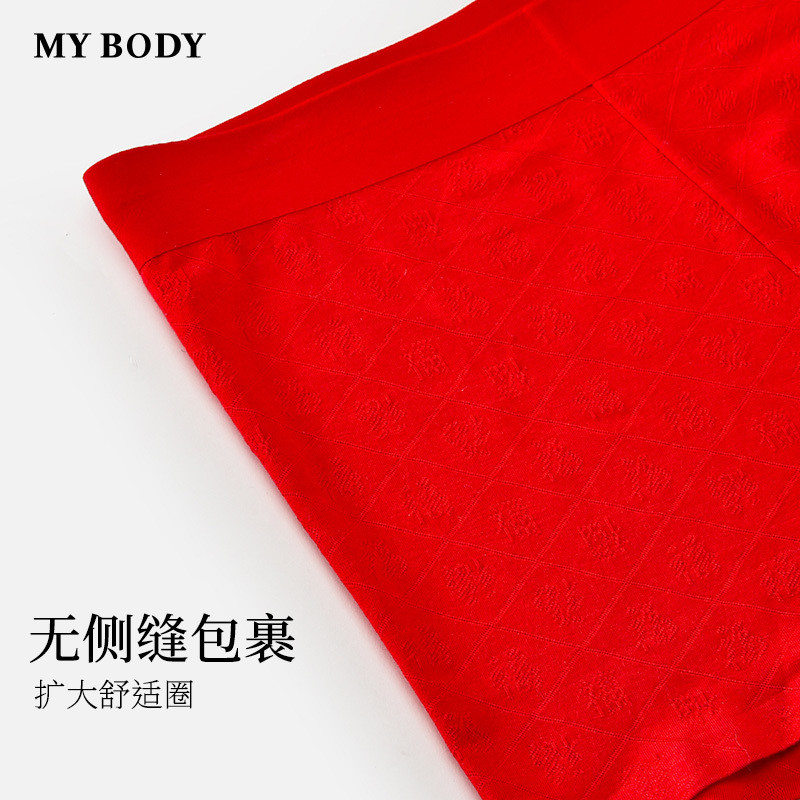 男士 马年平角短裤 红色四角裤 新款 男生 头大码 七匹狼纯棉本命年内裤