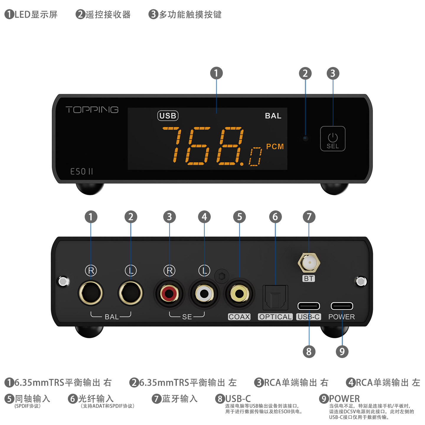 桌面式 器高解析无损HIFI硬解DSD台式 Ⅱ音频解码 TOPPING拓品E50