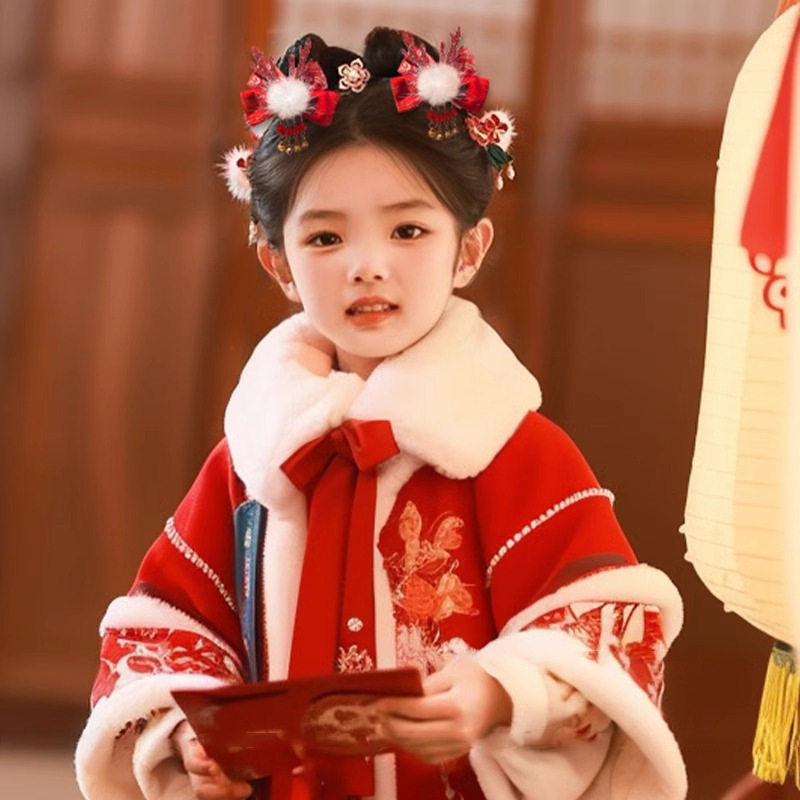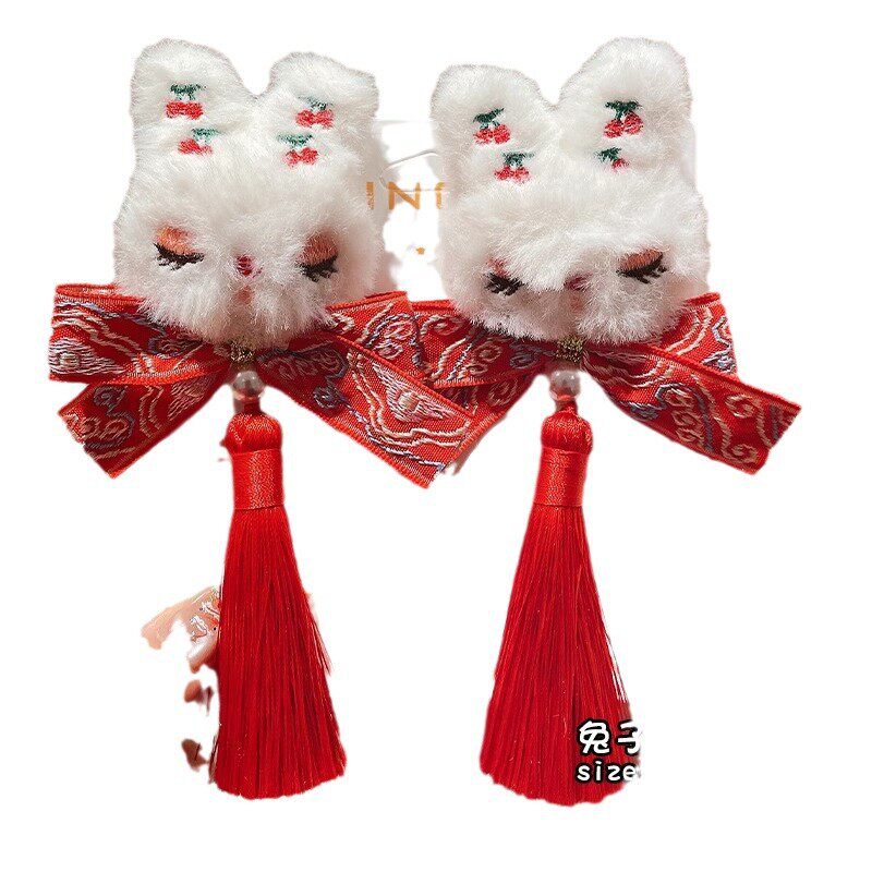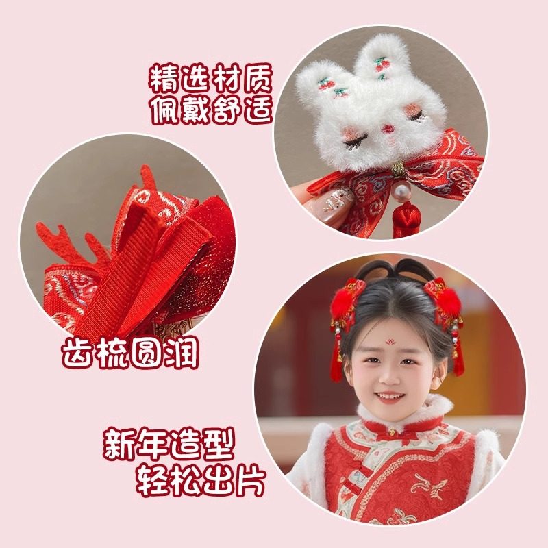 新年红色发饰2025新款 蝴蝶结夹子可爱毛绒发卡头饰对夹过年发夹女
