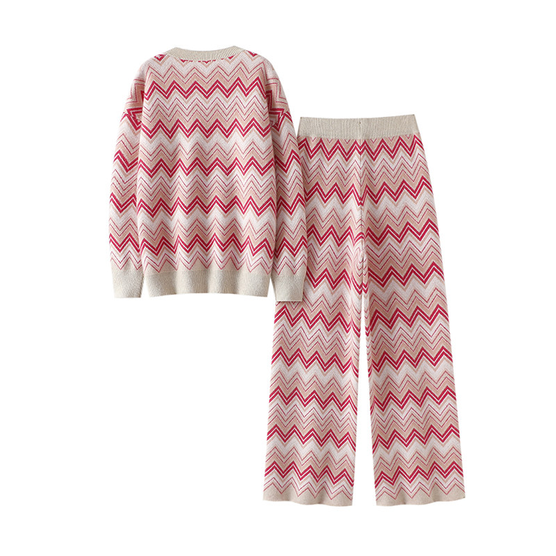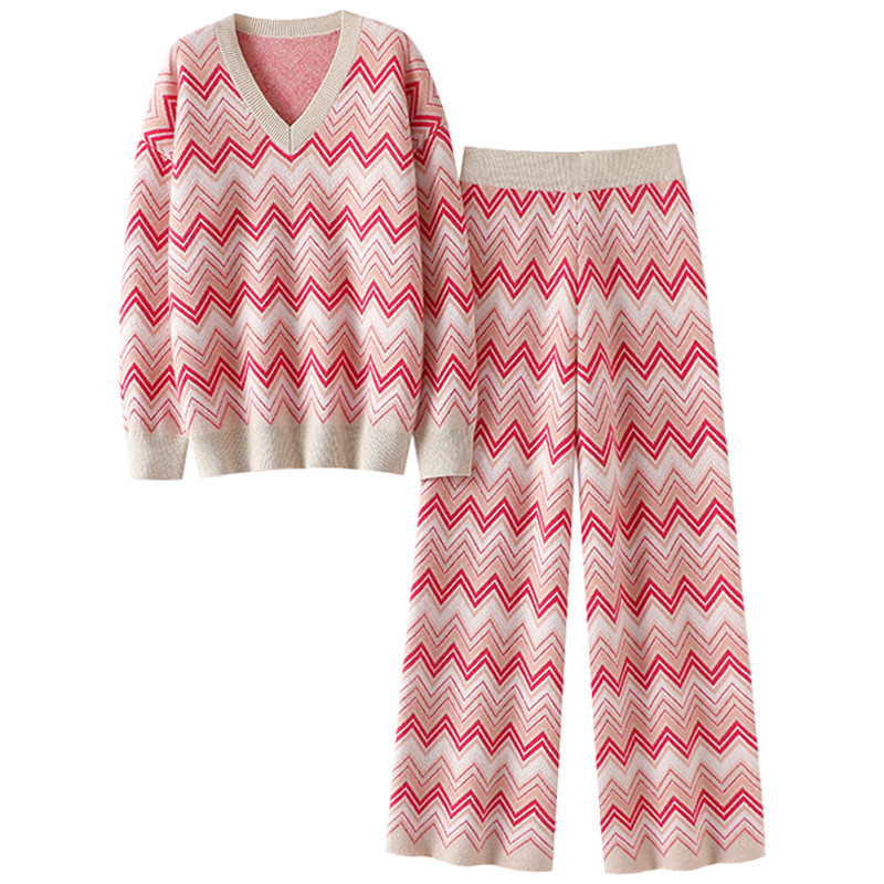 子女外穿套装 启超官方正品 女V领羊绒裤 加厚100%纯羊绒衫 高定