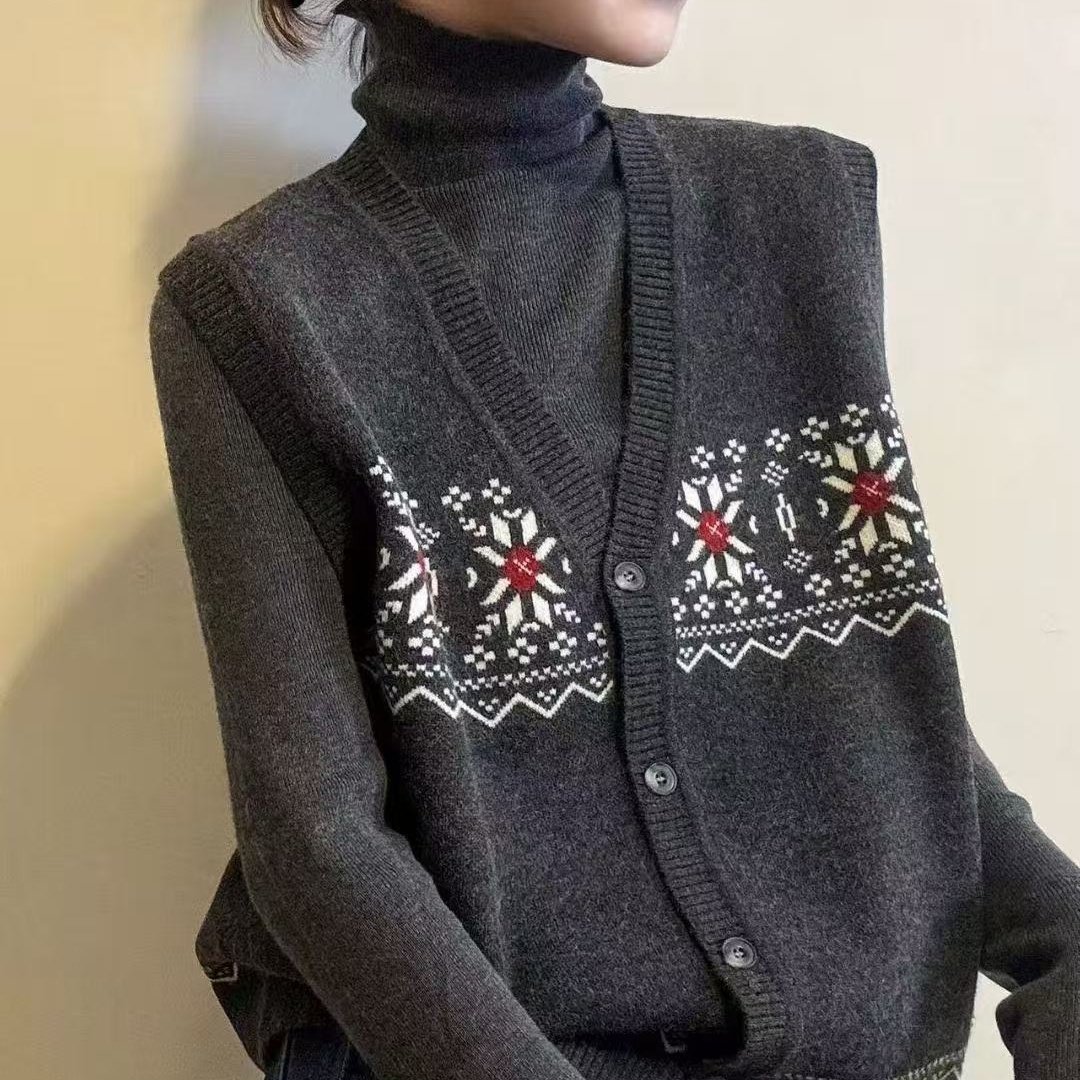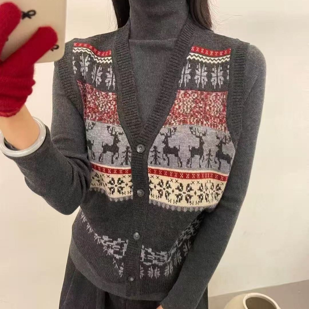欧货女装 新款 马甲两件套女欧洲站2025秋冬装 复古提花气质针织开衫