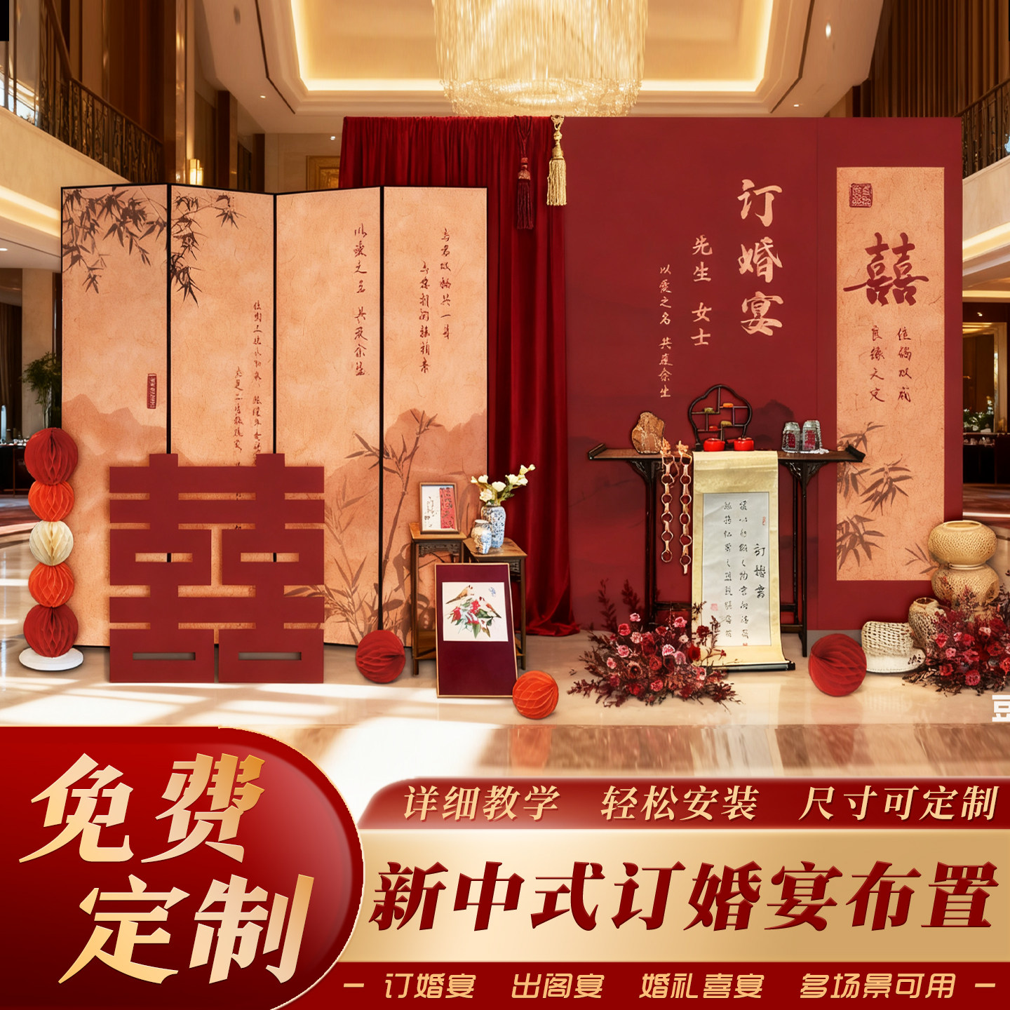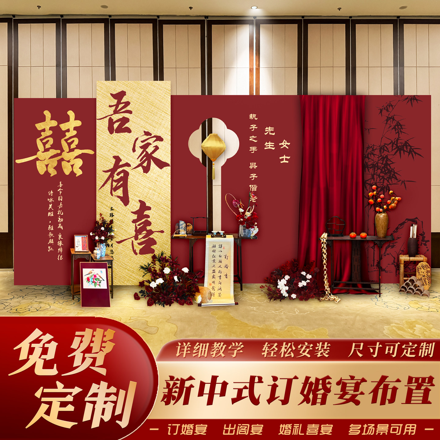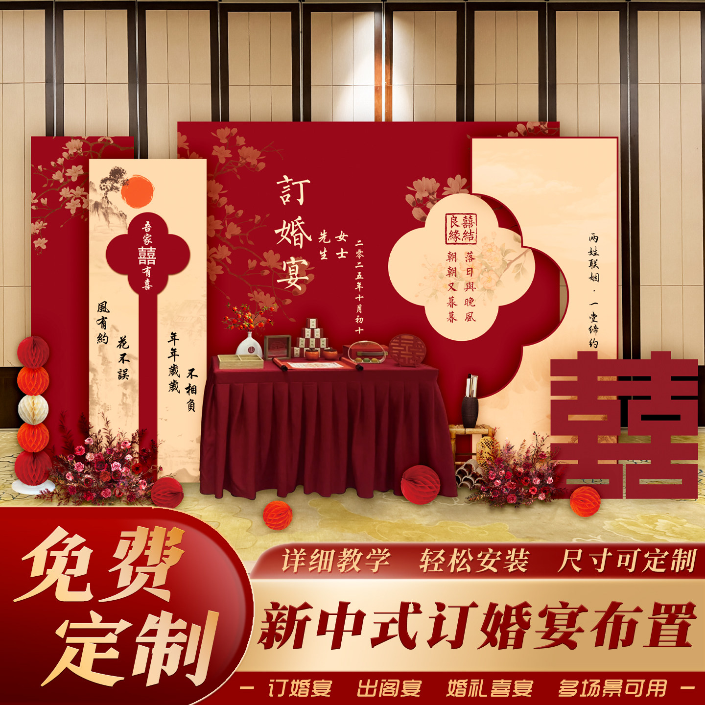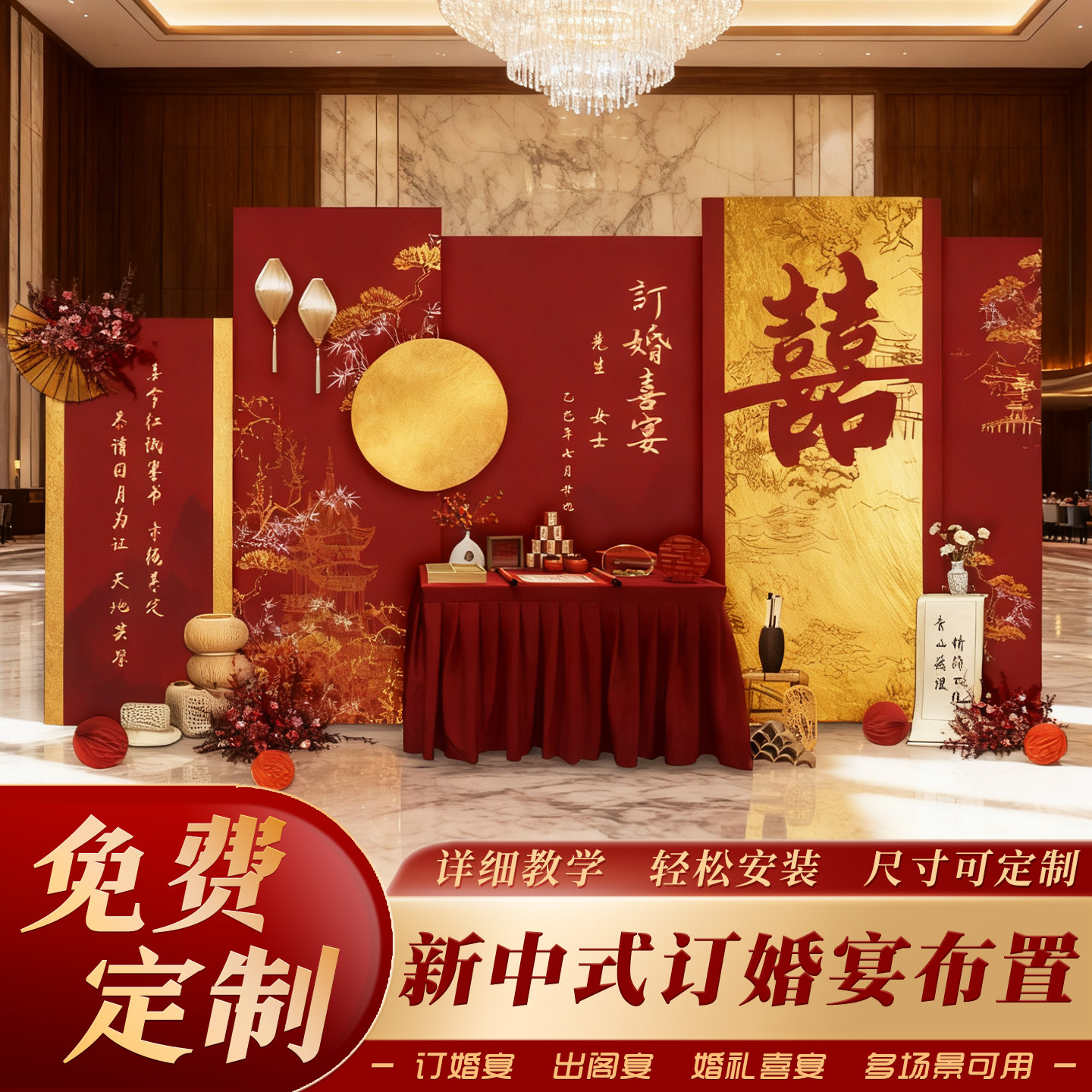 饰 饰布置kt板定制原创定制设计婚礼背景装 新中式 网红订婚宴布置装