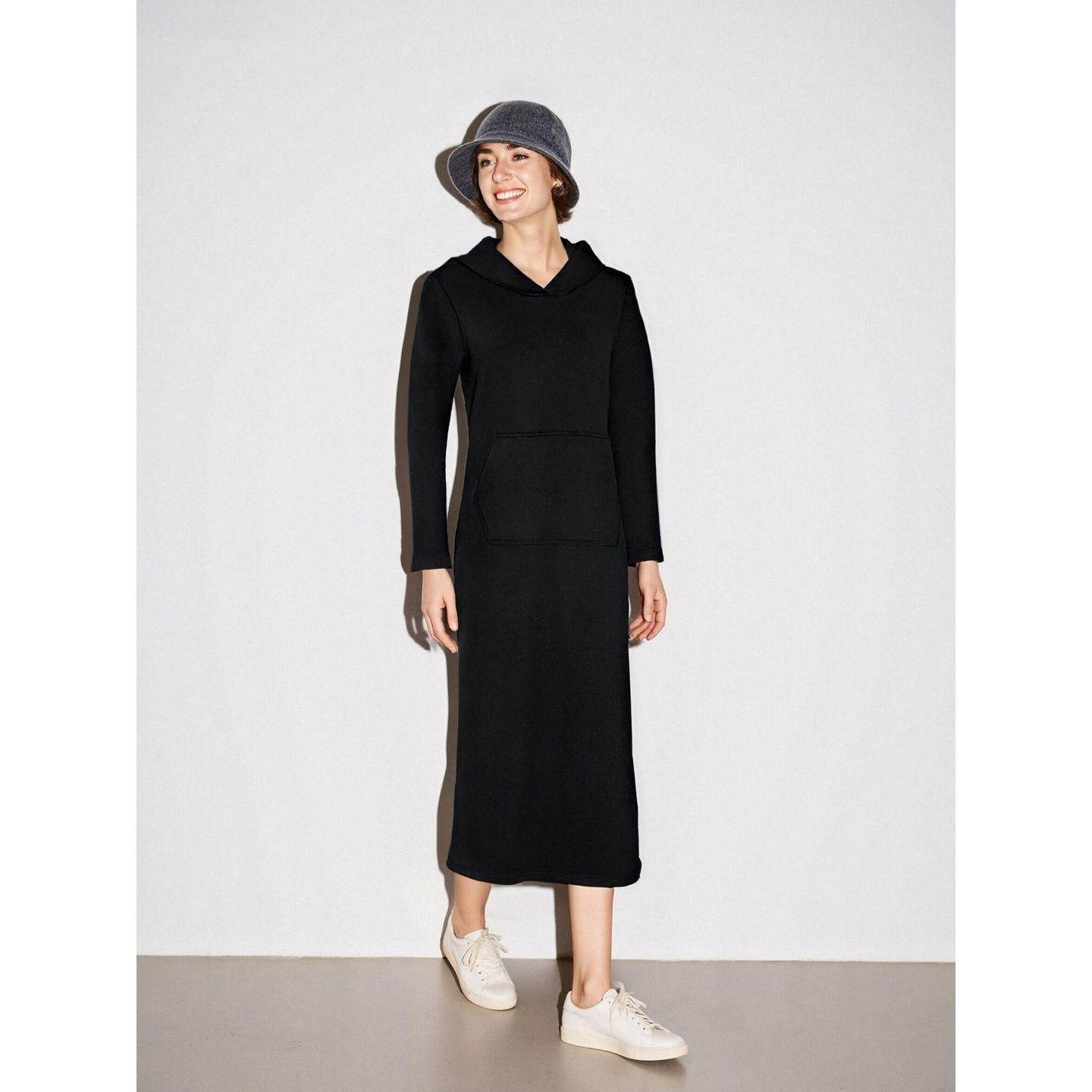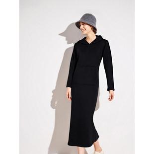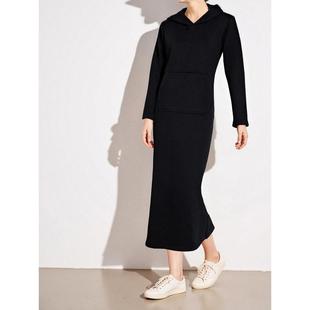 内搭显瘦长款 百家好黑色加绒连帽卫衣裙女春季 打底裙 House Basic