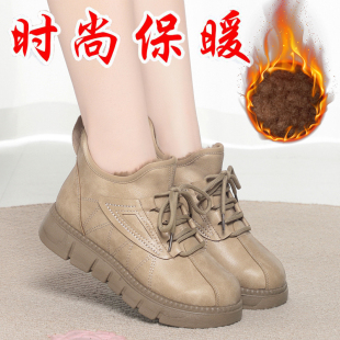 平底保暖老北京棉鞋 冬季 时尚 厚底雪地靴休闲一脚蹬懒人女棉鞋 新款