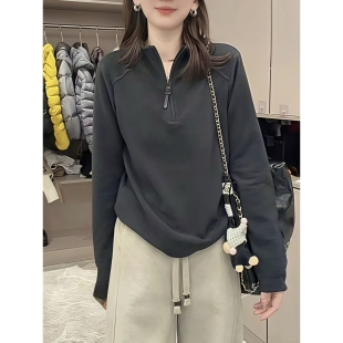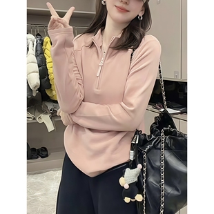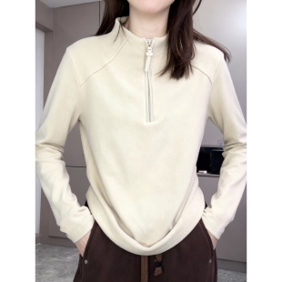 ins 百搭保暖打底衫 加厚双面德绒半拉链立领长袖 T恤女2025秋冬新款