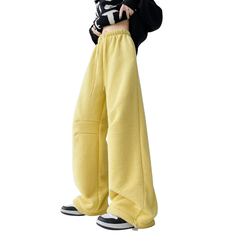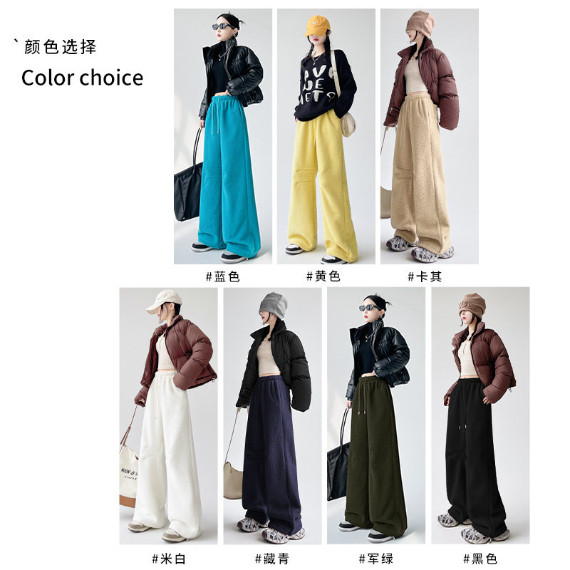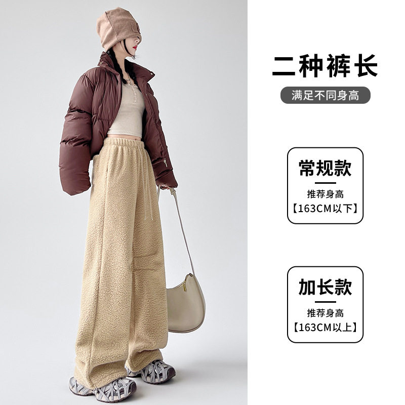子阔腿裤 摇粒绒运动裤 加绒加厚裤 冬季 女宽松休闲直筒两穿束脚卫裤