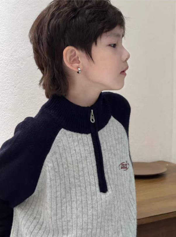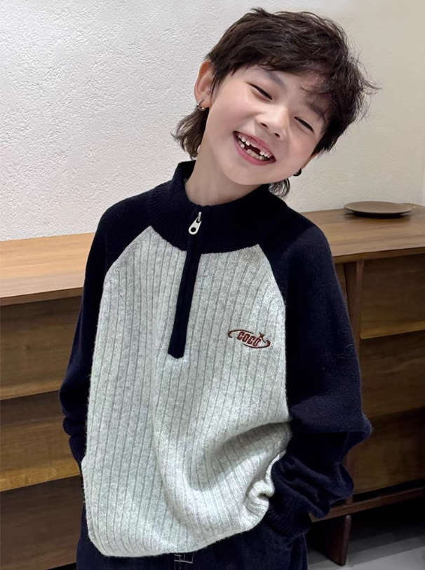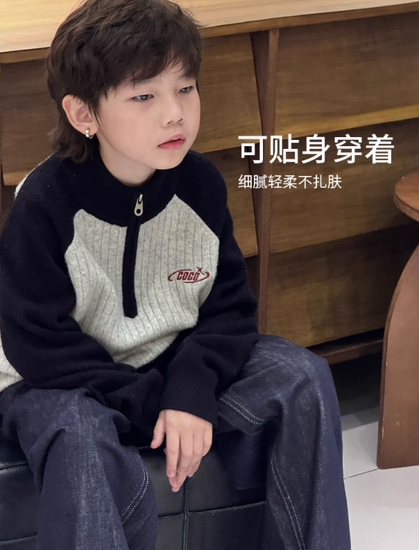针织衫 男女童中大童拉链立领毛衣保暖线衣落肩袖 波拉童装 2025冬装