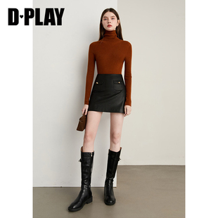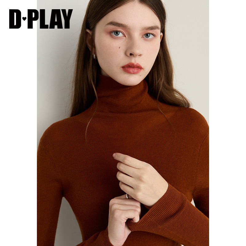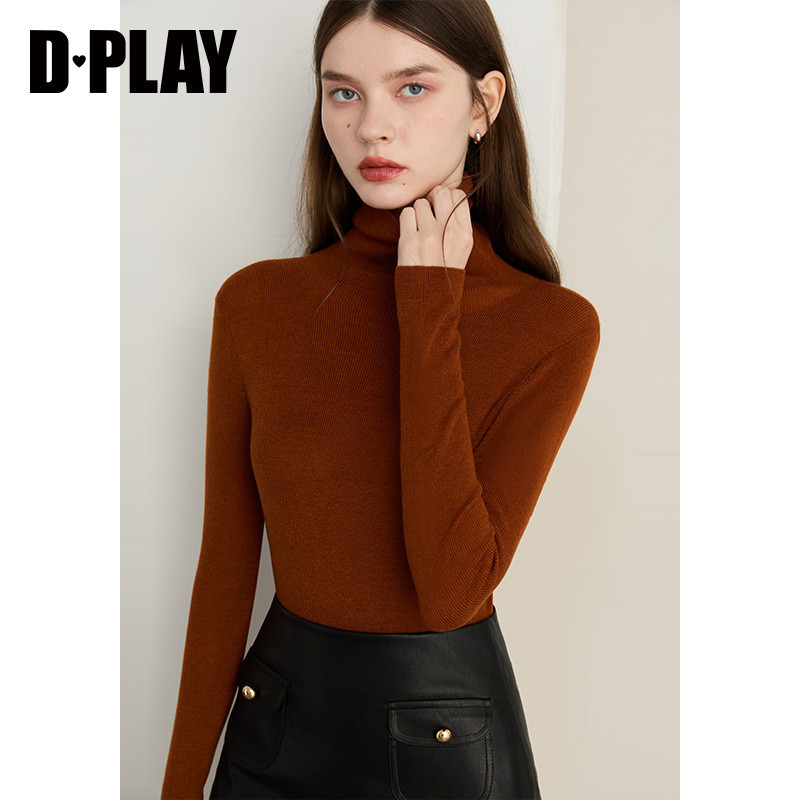 上衣女高领打底衫 DPLAY 细针内搭修身 2025冬焦糖色针织衫 惠品