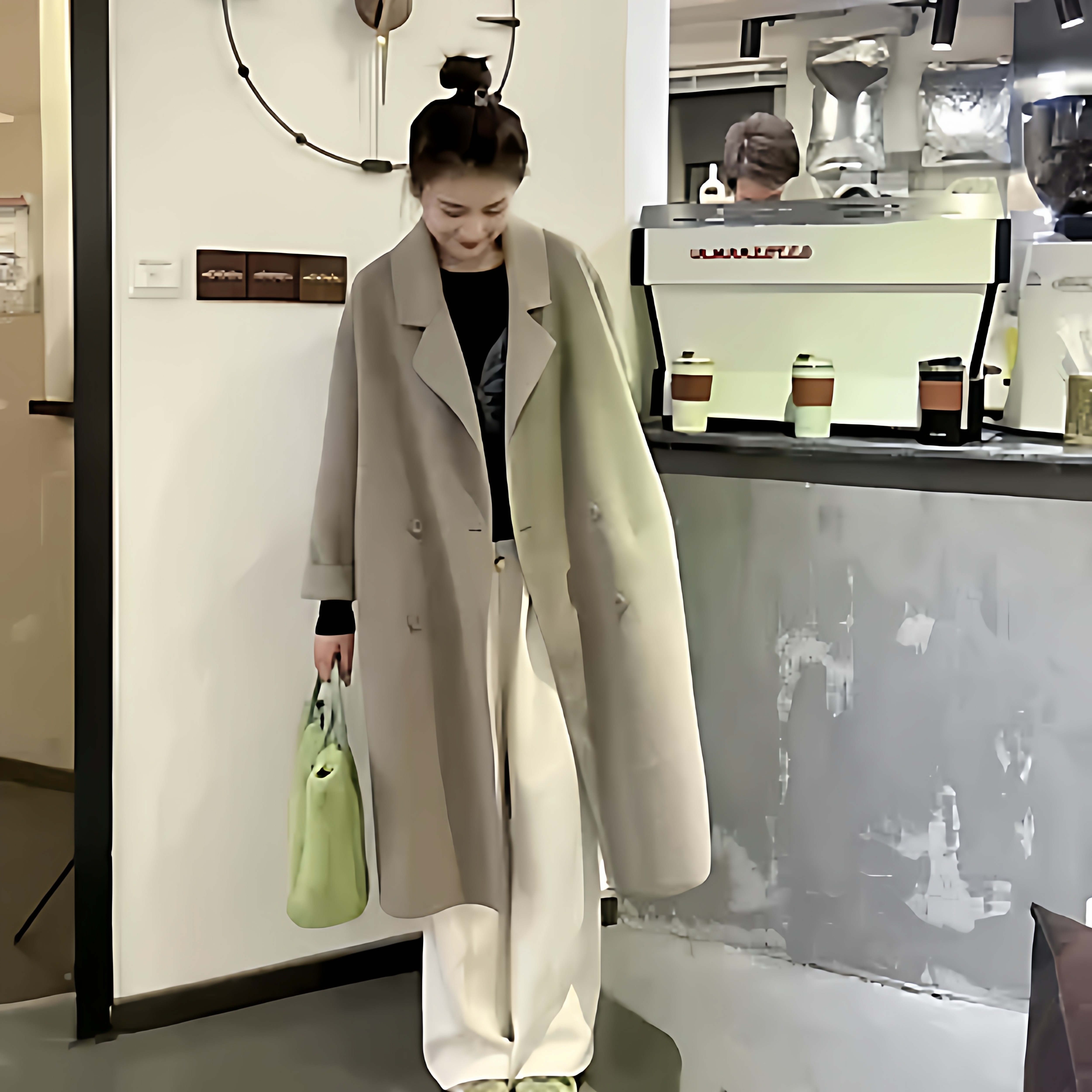 西装 过膝双面羊绒外套 领毛呢子风衣 中长款 纯羊毛双面呢大衣男士