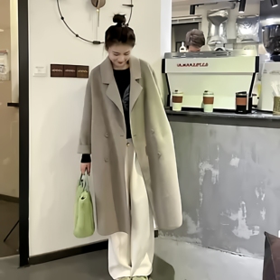 领双排扣呢子风衣外套加厚ins潮流 过膝西装 冬季 毛呢大衣男中长款