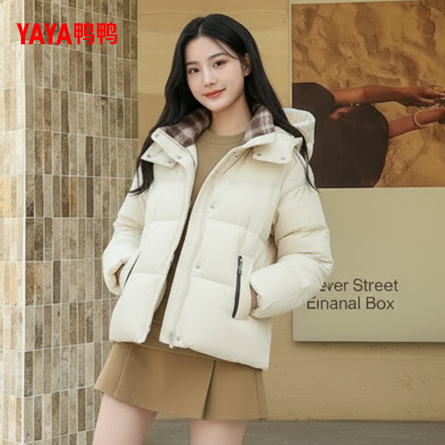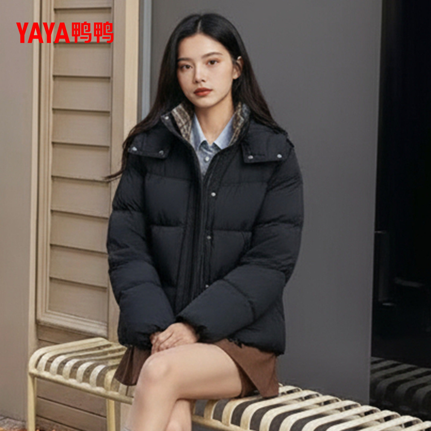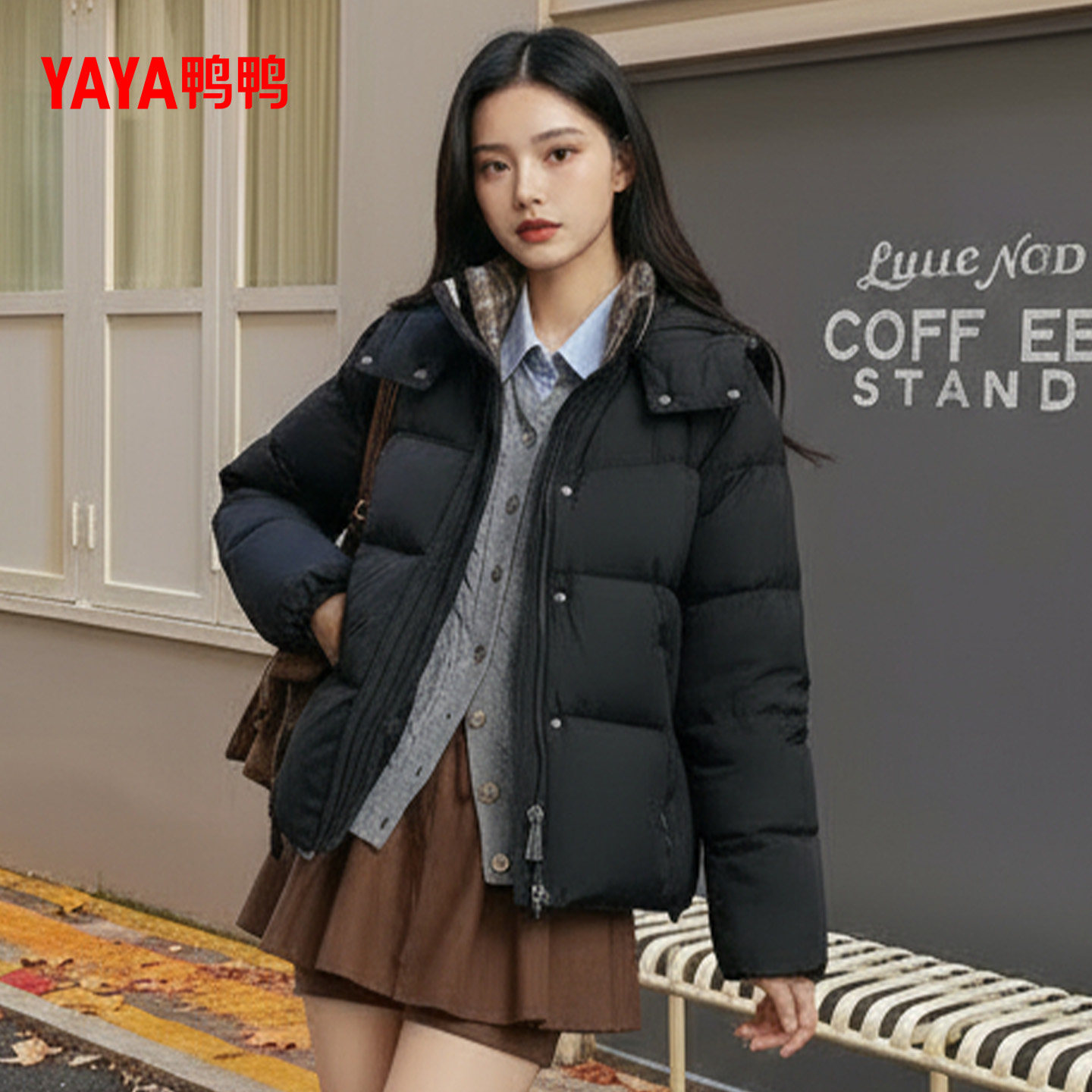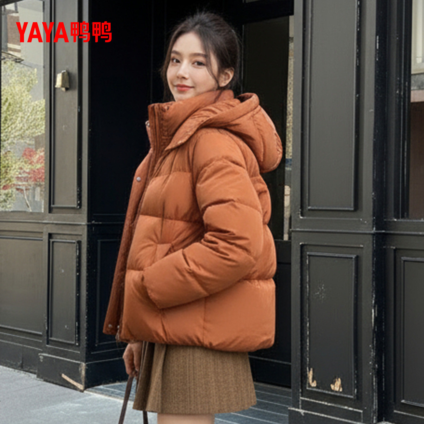 连帽保暖外套J 短款 鸭鸭滑雪羽绒服女2025年秋冬反季 宽松纯色时尚