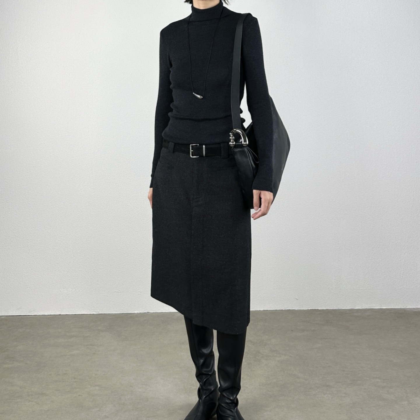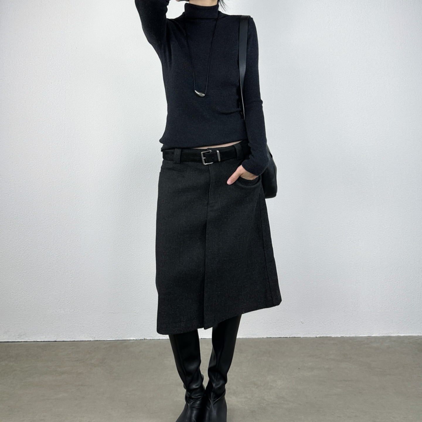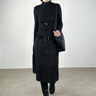 尢系UXI通勤高腰毛呢半身裙中长款 百搭直筒裙百褶裙配皮带包臀裙