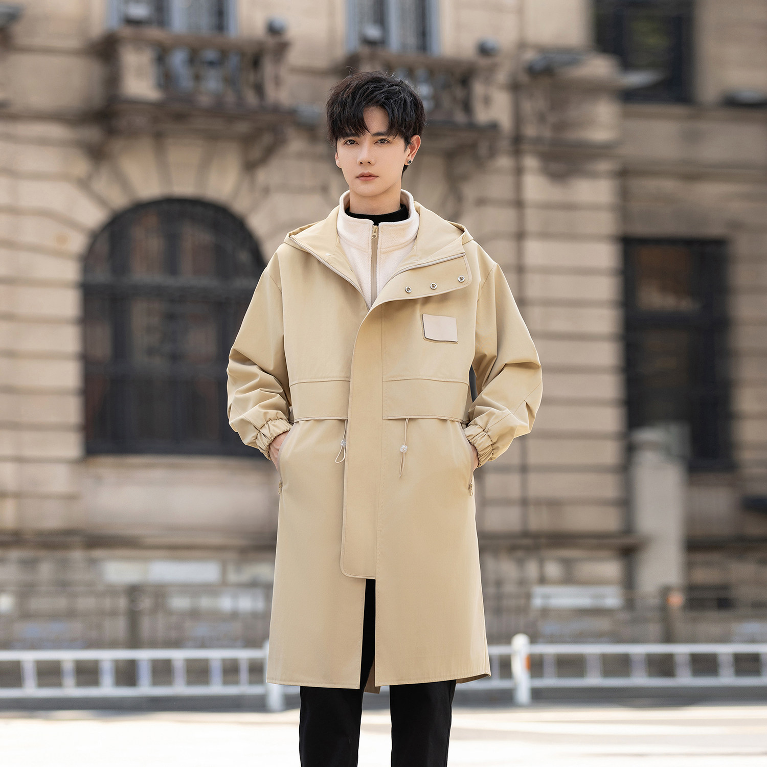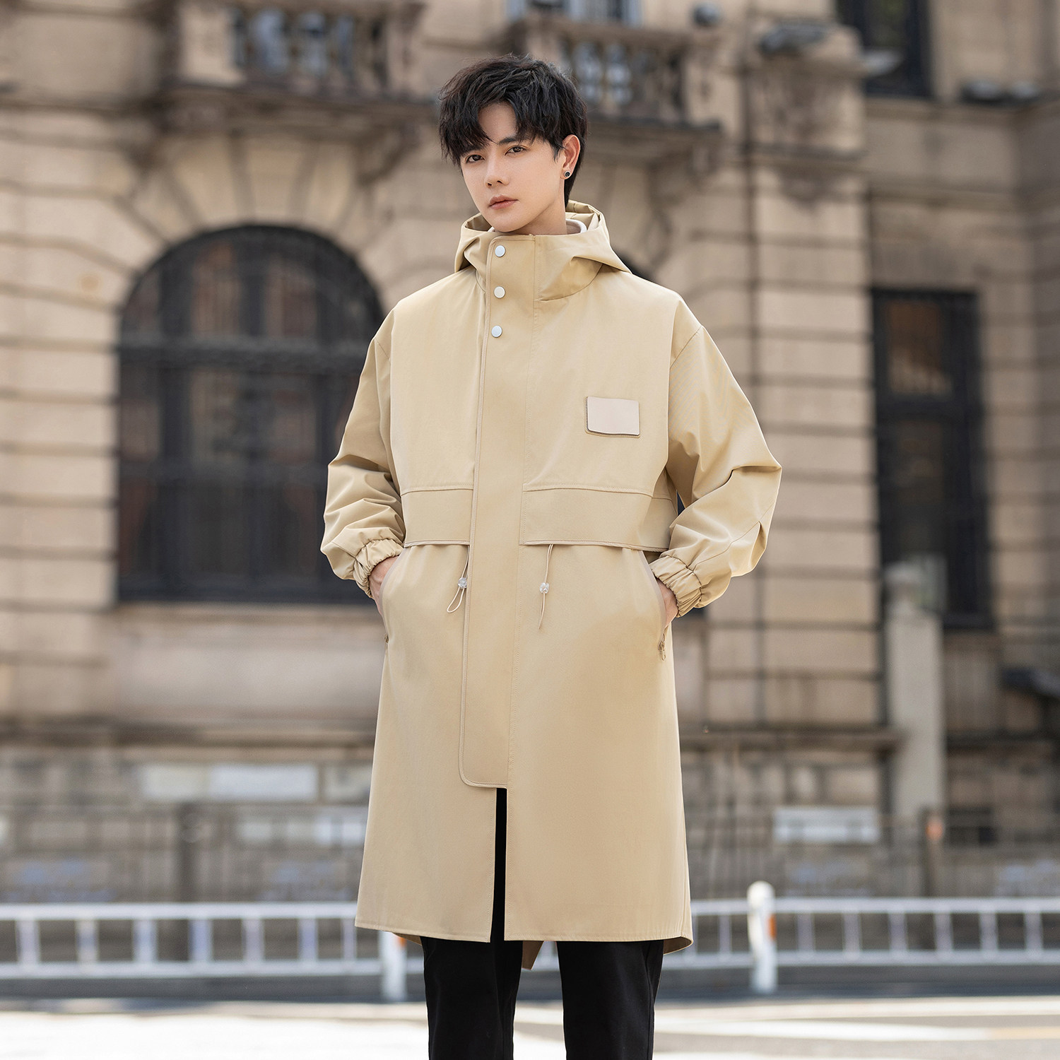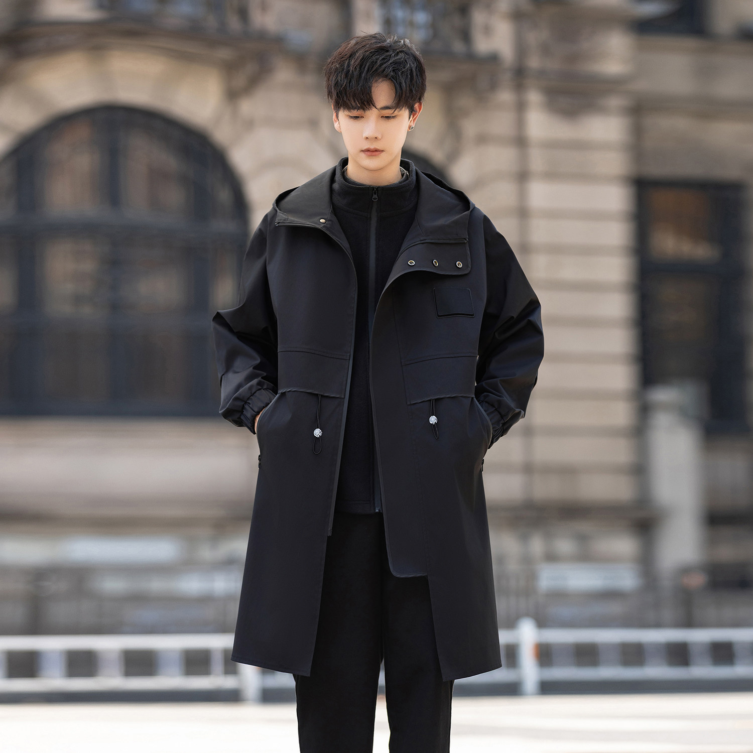 魔术贴过膝连帽外套 三防风衣秋冬两件套冲锋衣面料男装 男士 中长款