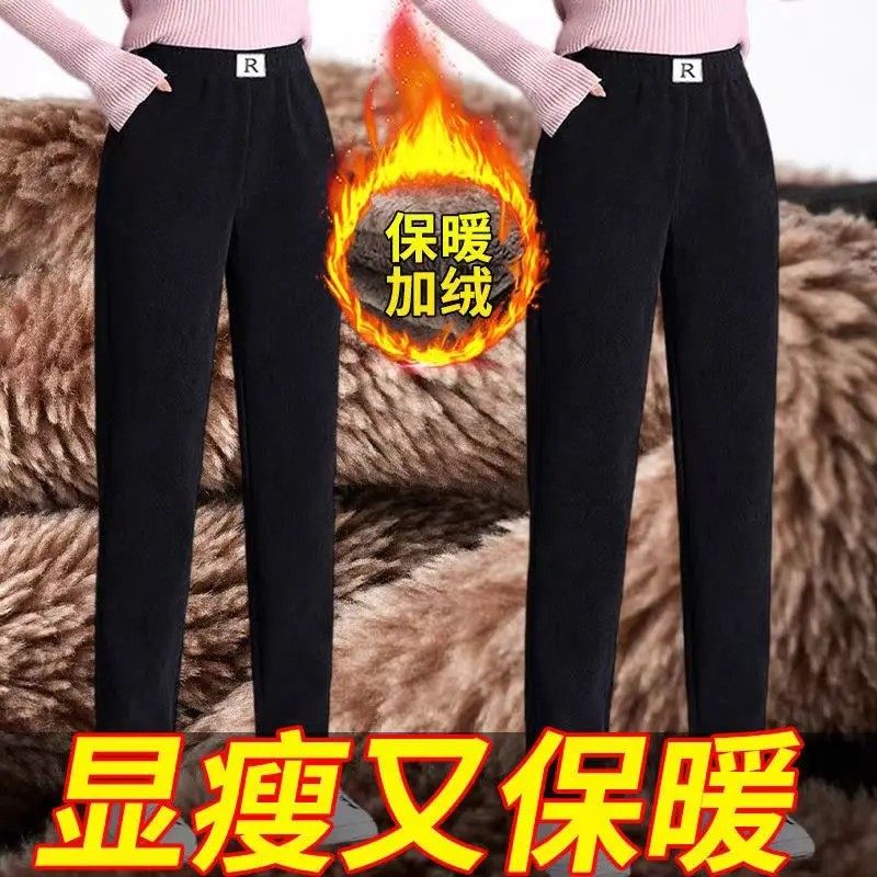 保暖裤 女2025年欧货秋冬松紧腰休闲阔腿裤 子 卫裤 加厚奥粒绒弯刀裤