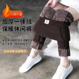 子 高腰垂感秋冬直筒休闲加绒裤 棕咖色雪尼尔阔腿裤 女春秋2025新款