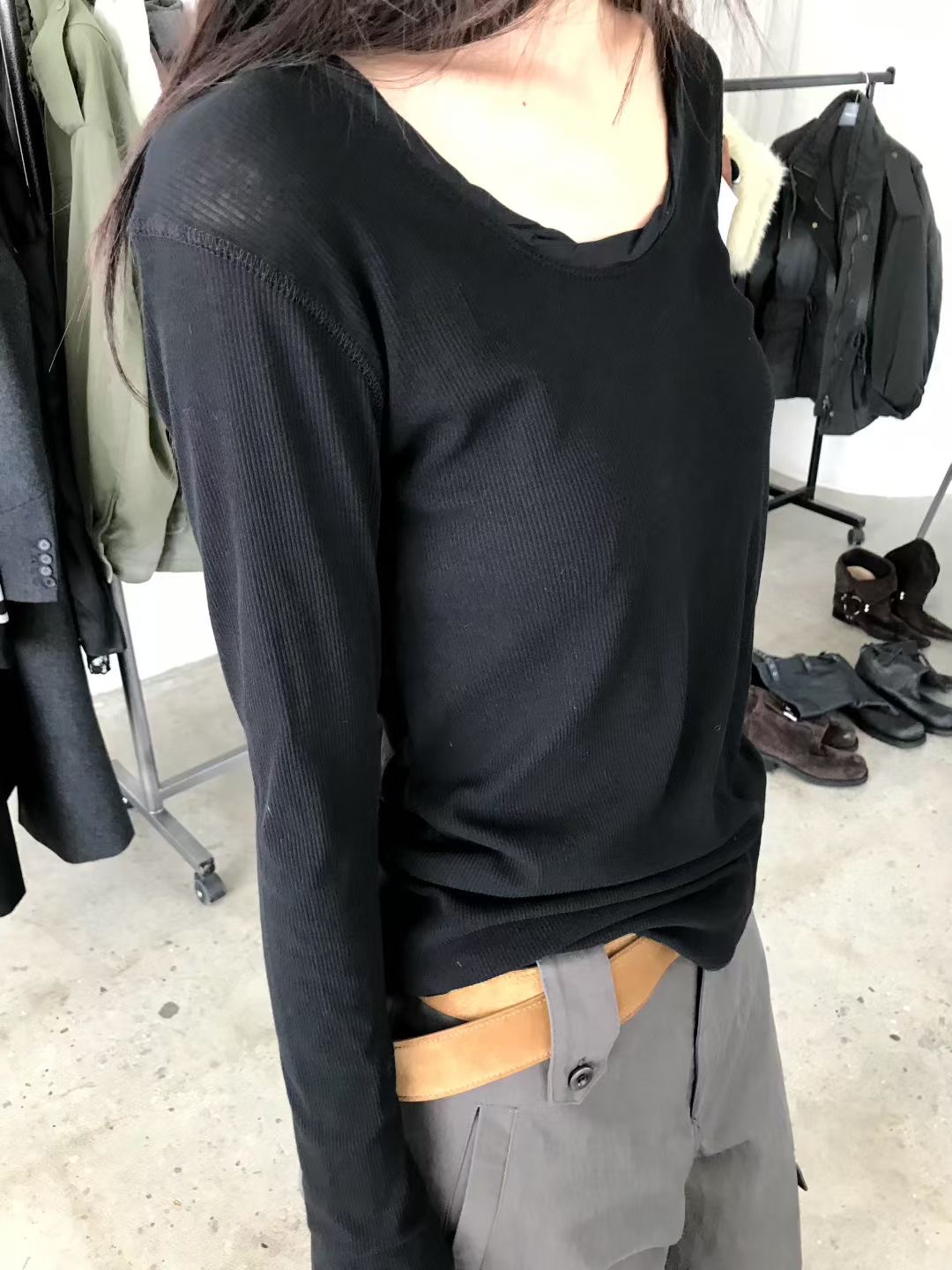 WELOVER简约纯色微透打底长袖 现25冬季 ARE 韩国东大门WE T恤 新款
