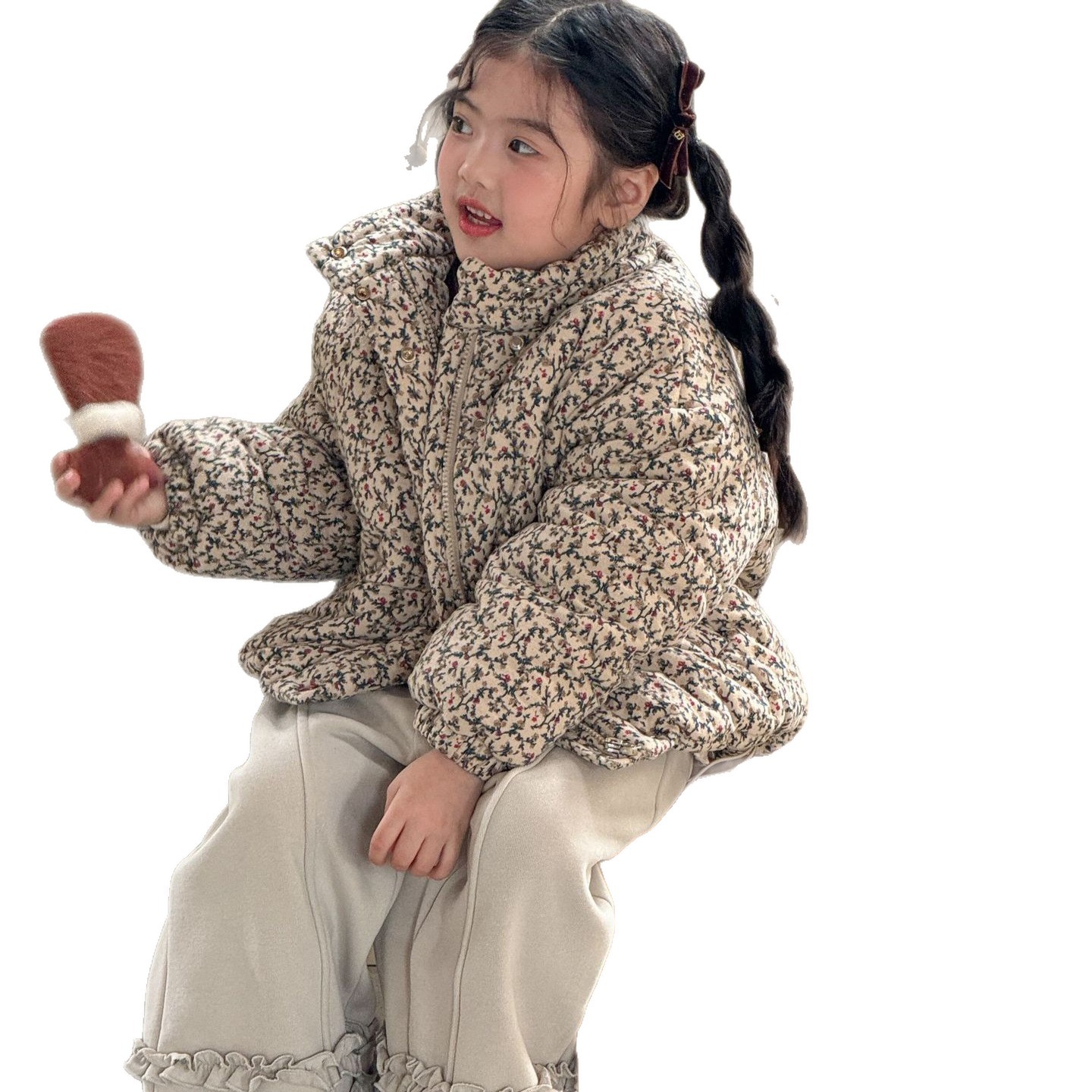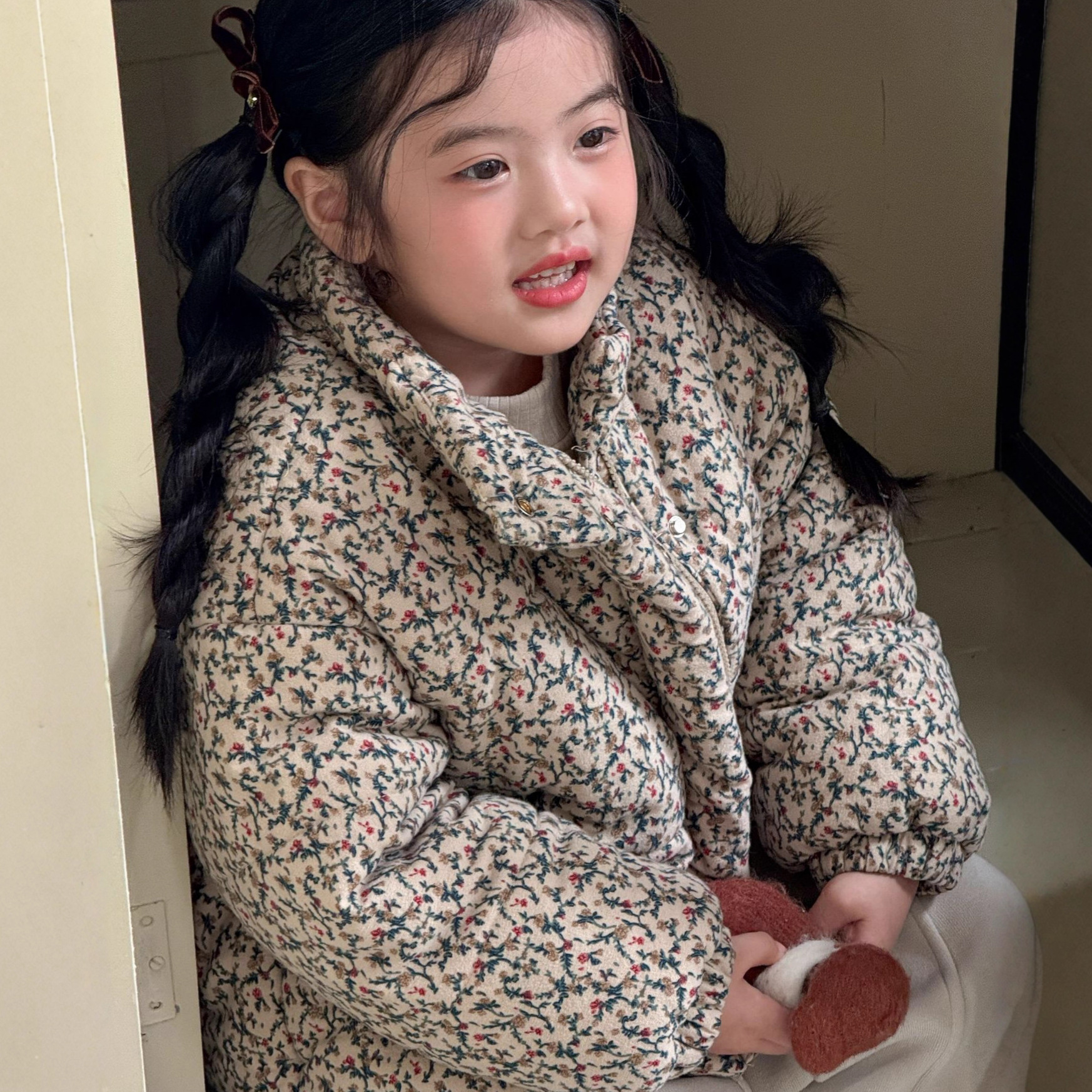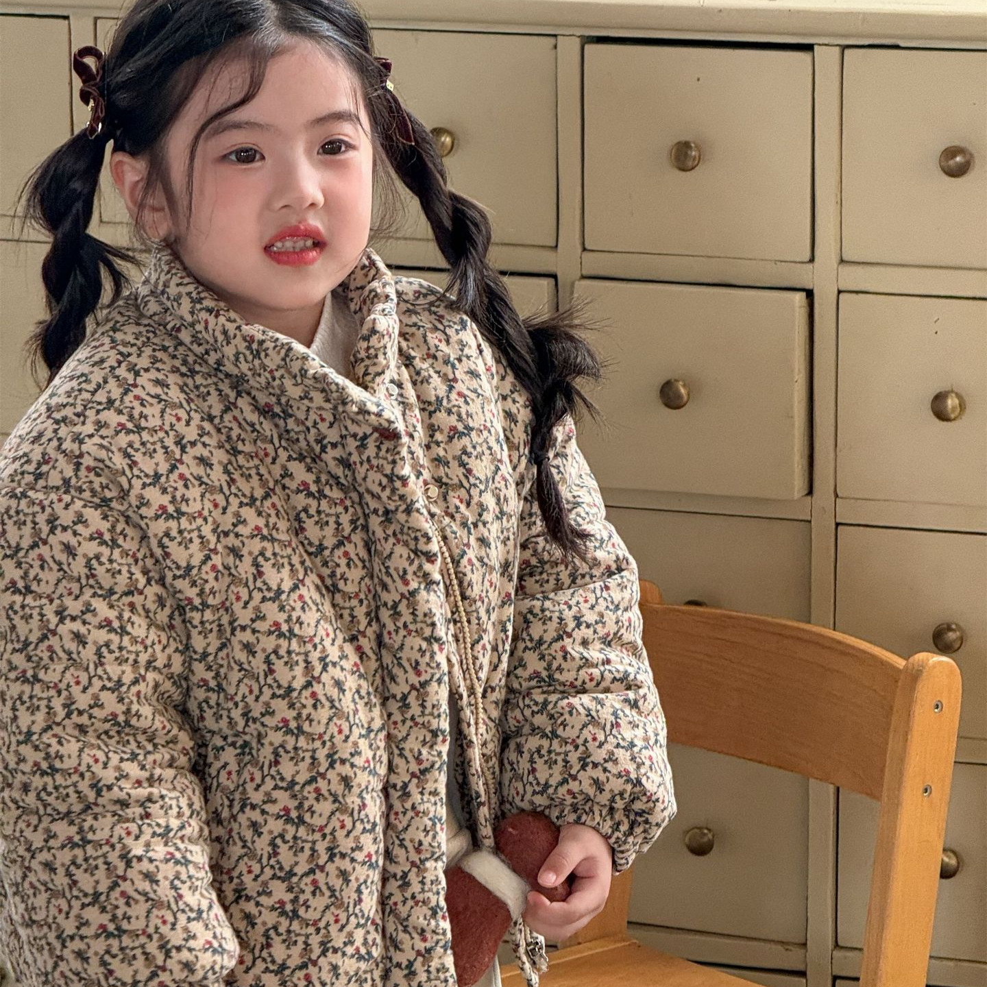2025秋冬季 吸汗韩系女童夹棉加厚碎花棉服百搭洋气上衣