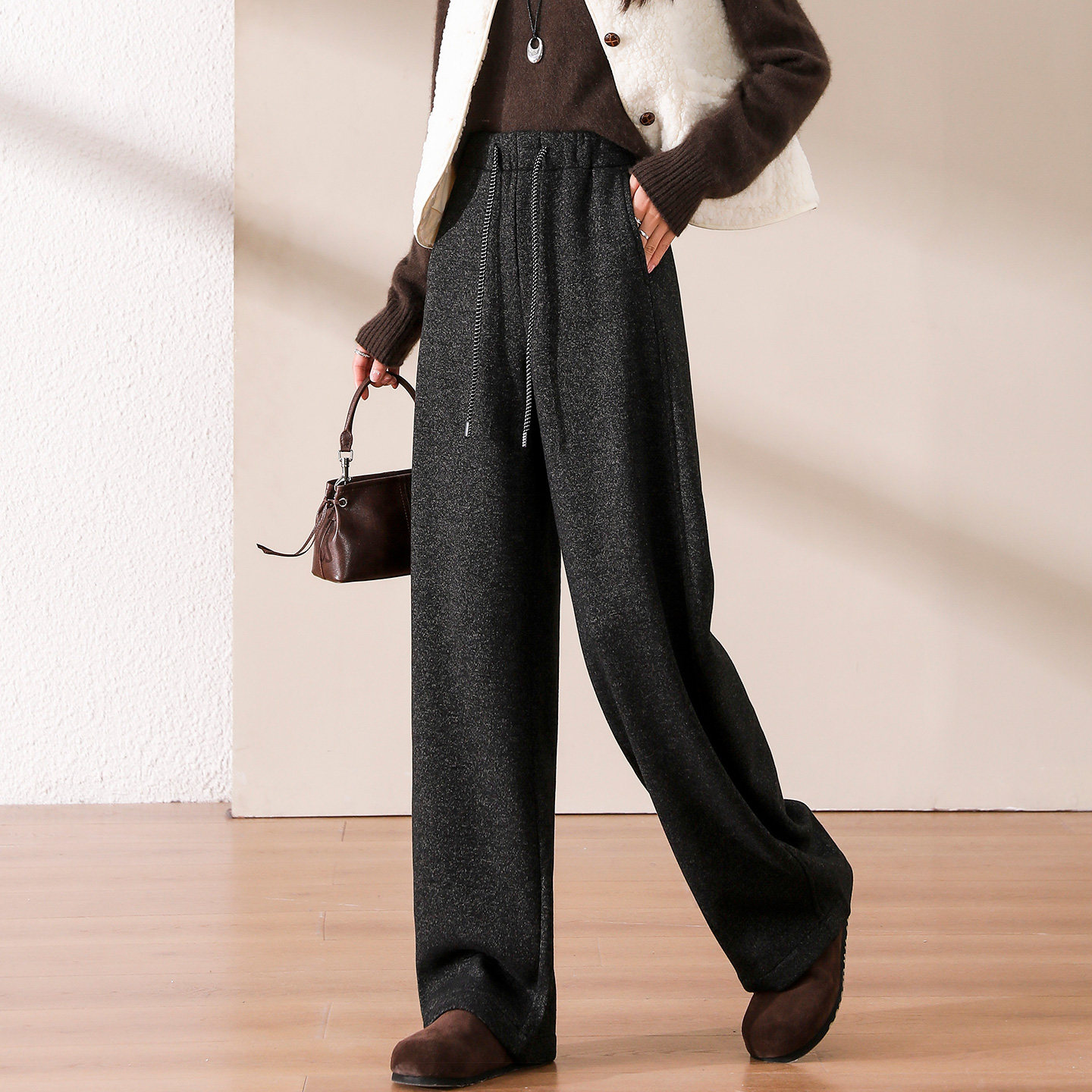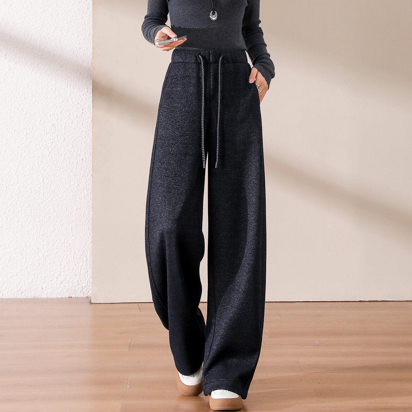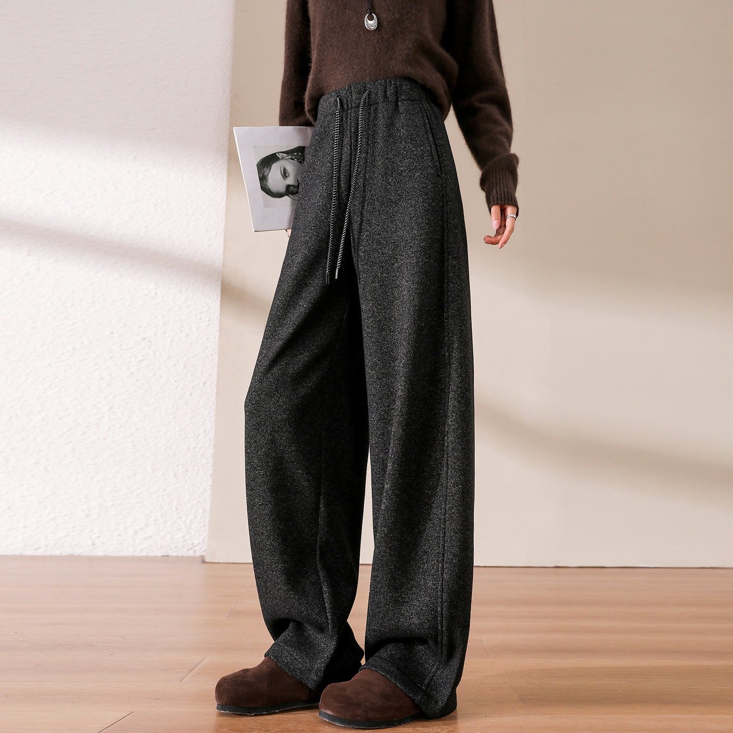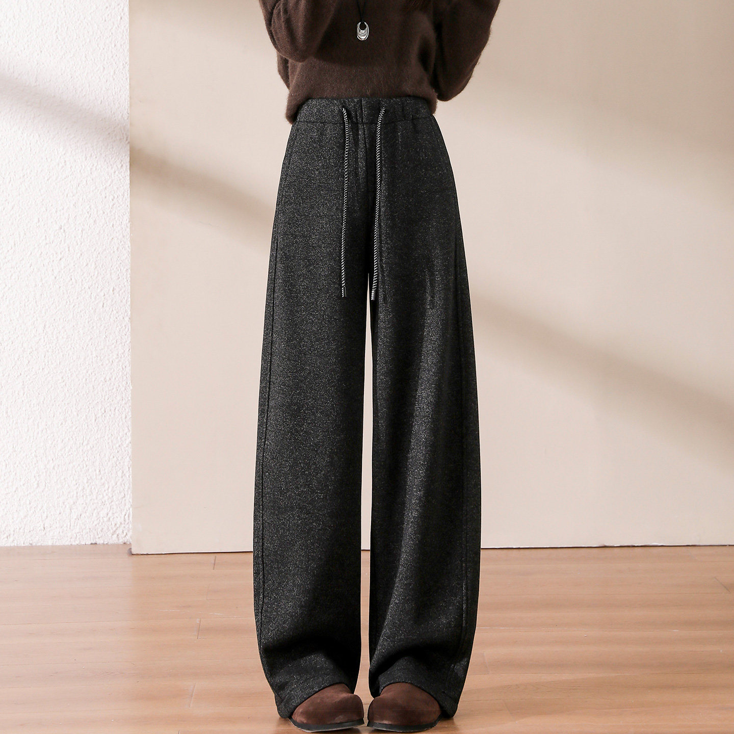 醋酸镰刀阔腿裤 加绒加厚香蕉裤 子 女秋冬2025新款 青花瓷羊绒弯刀裤