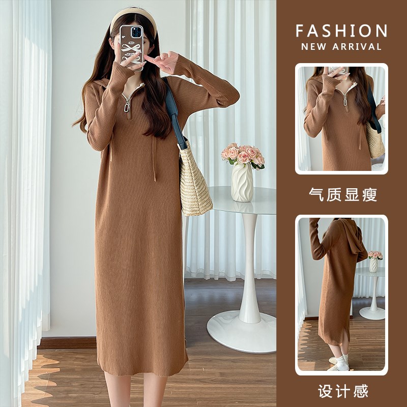 春装 孕妇裙春季 时尚 连衣裙2025新款 简约休闲裙子春 连帽长袖 孕妇装