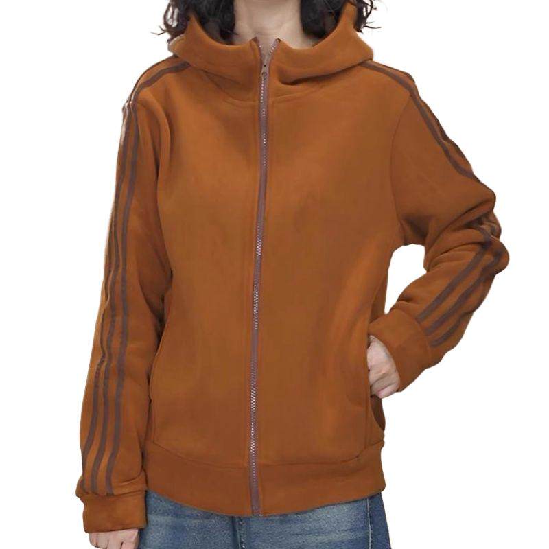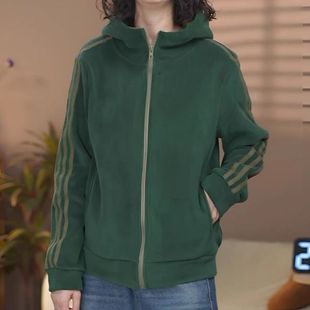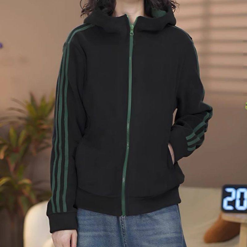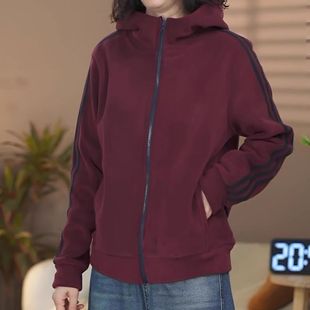 秋冬新款 休闲宽松连帽拼条撞色百搭外套女 双面奥粒绒卫衣女时尚