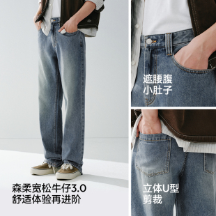 森马牛仔裤 春夏宽松直筒裤 男经典 新款 显高 百搭cleanfit长裤 森柔