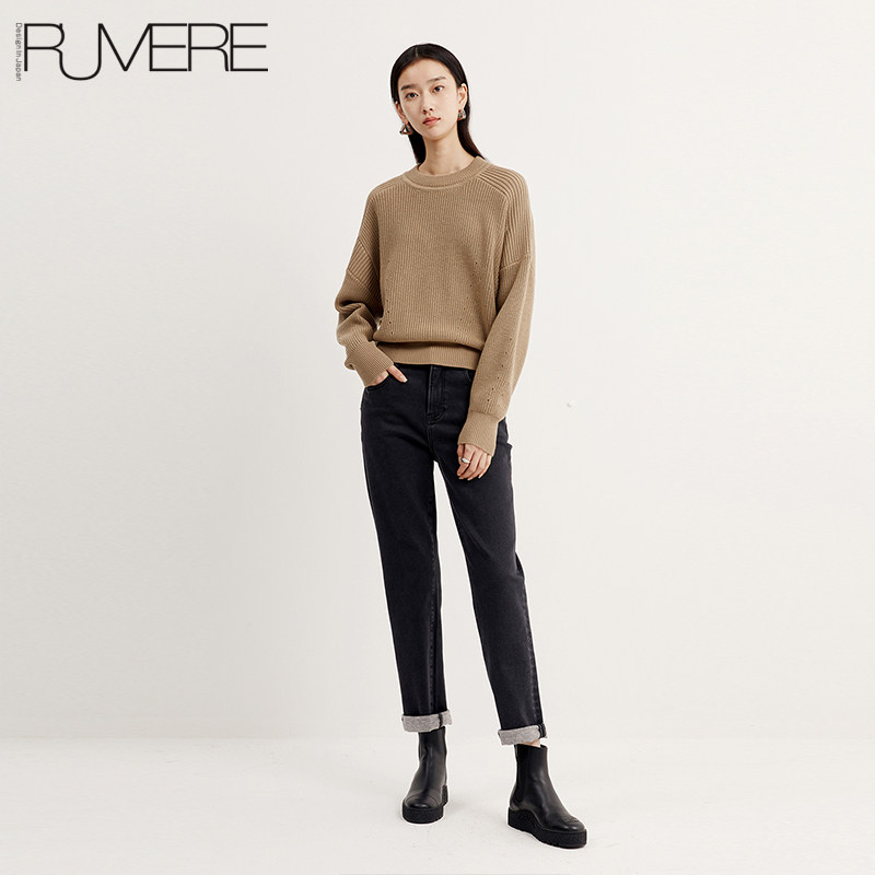 纯羊毛圆领造型棒针针织套衫 建筑理念高克重 ZZ0612510 戎美