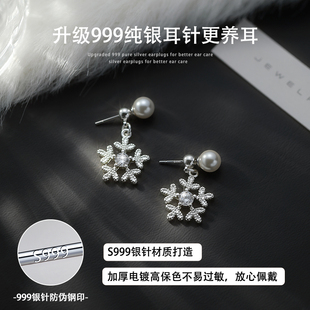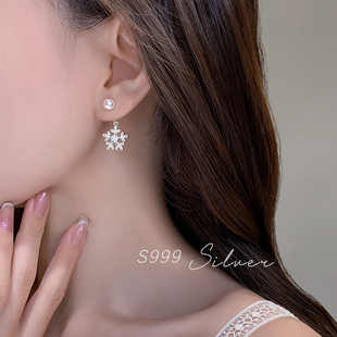 耳饰 爆款 999纯银耳针初雪珍珠雪花耳钉女法式 设计感耳环2025新款