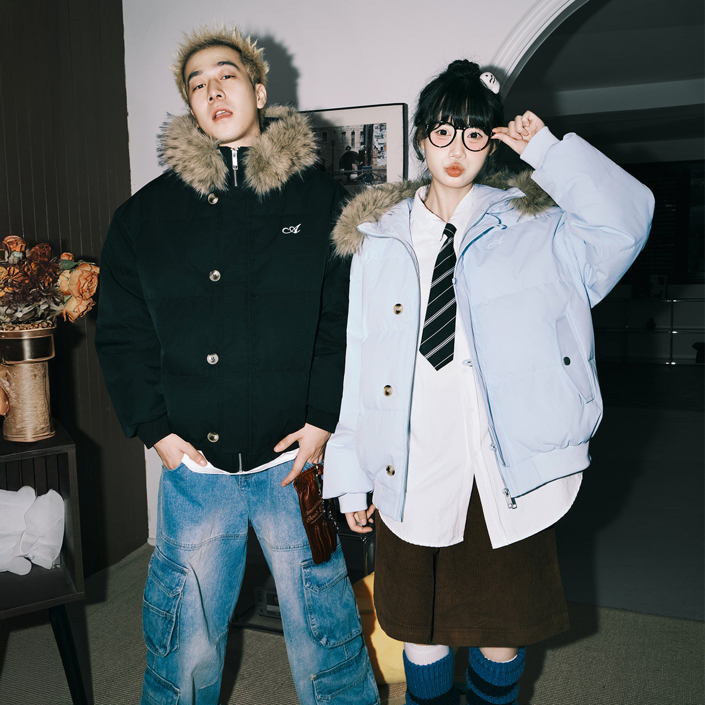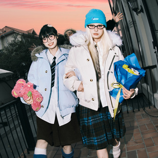 AFGK五色魔术贴冬季 立领羽绒服男女白鸭绒加厚保暖外套面包服 短款
