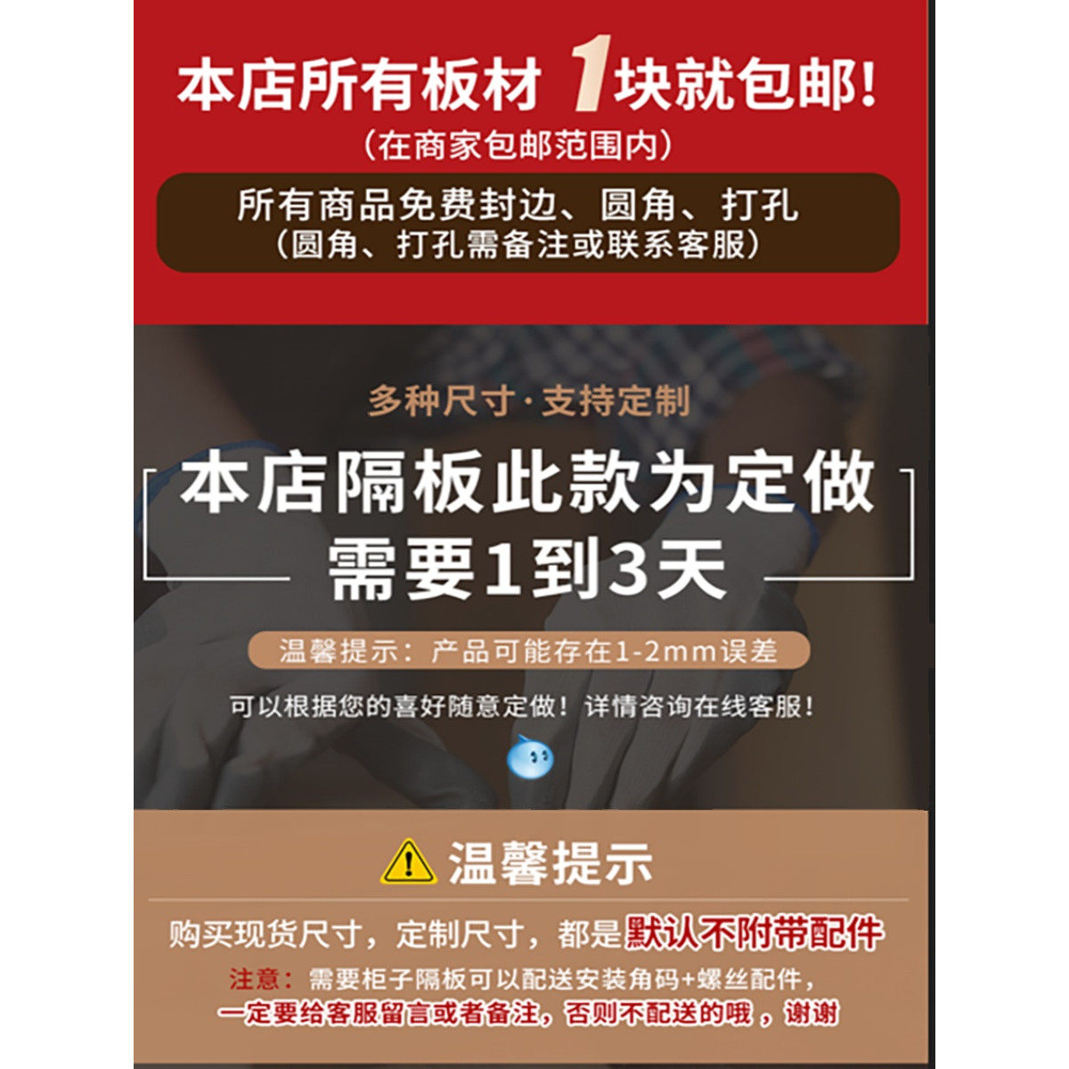 木板定制墙壁置物书架衣柜分层隔板定做货架鞋 柜厨房搁板免漆环保