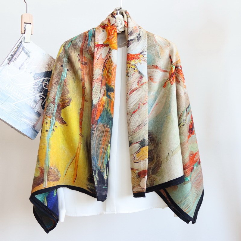 女款 印花氛围感围巾冬季 披肩围脖 豹纹丝巾复古千禧风薄款 网红同款