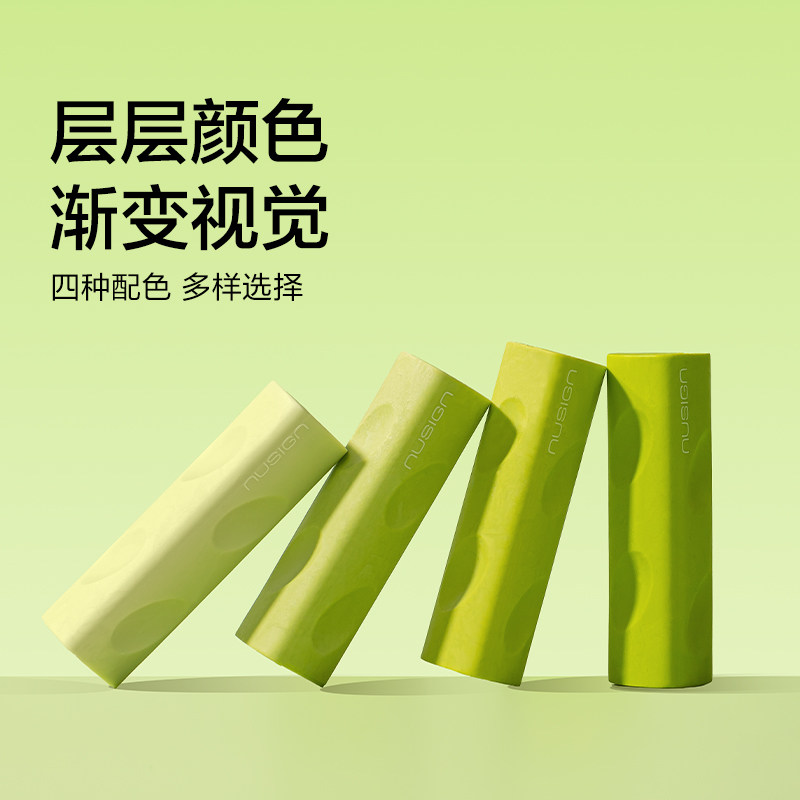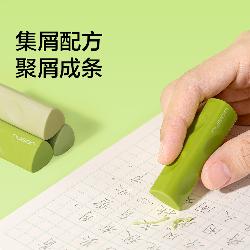 Nusign纽赛青木系列三角洞洞橡皮擦小学生专用绿色集屑高颜值擦字成线成条儿童易握干净不留痕hb考试绘画素描