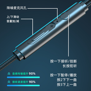 线控半入耳式 带麦克风线控3.5mmtrs插头不支持降噪普通有线耳机