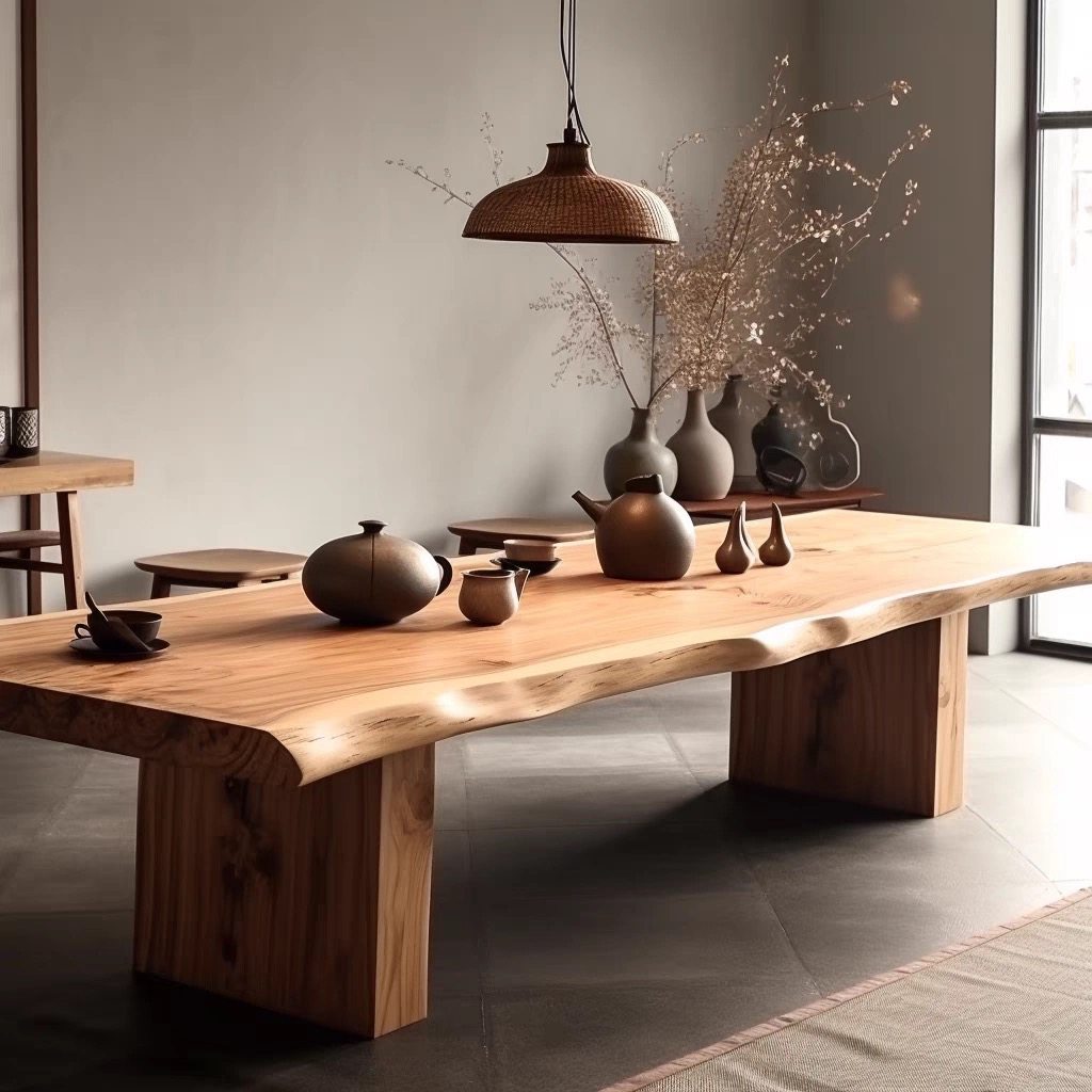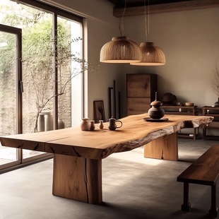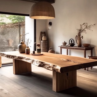 原木大板会议桌简约现代大型办公桌子实木长条洽谈桌椅组合工作台