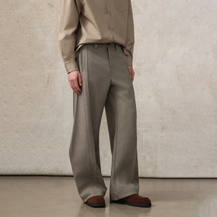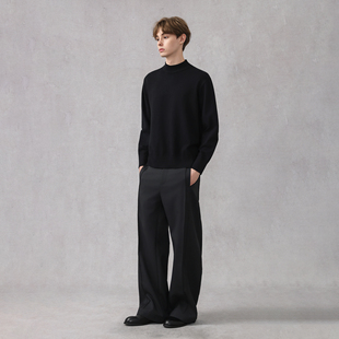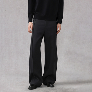 直筒宽松男基础加厚垂感商务修身 YUXIAN余闲秋冬毛呢长九分裤 西裤