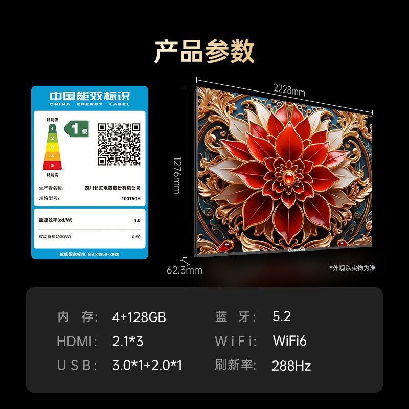长虹100T50H 国补2000元 100英寸超高清液晶大屏电视机 精品