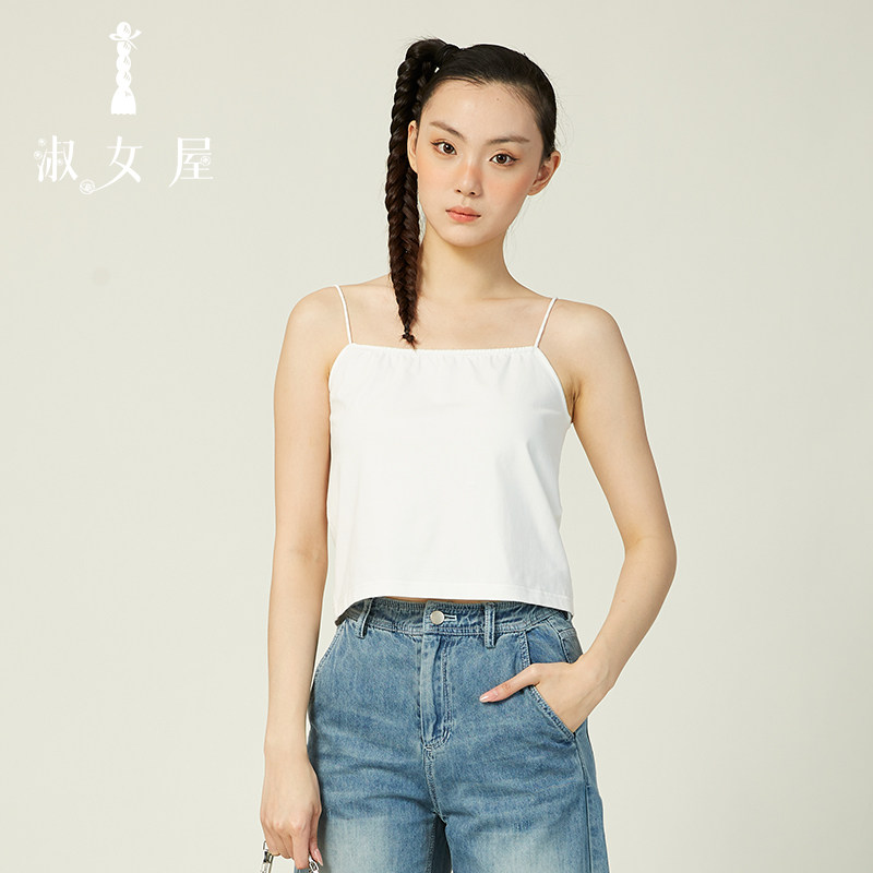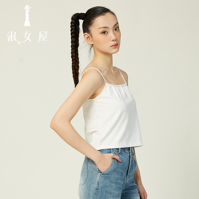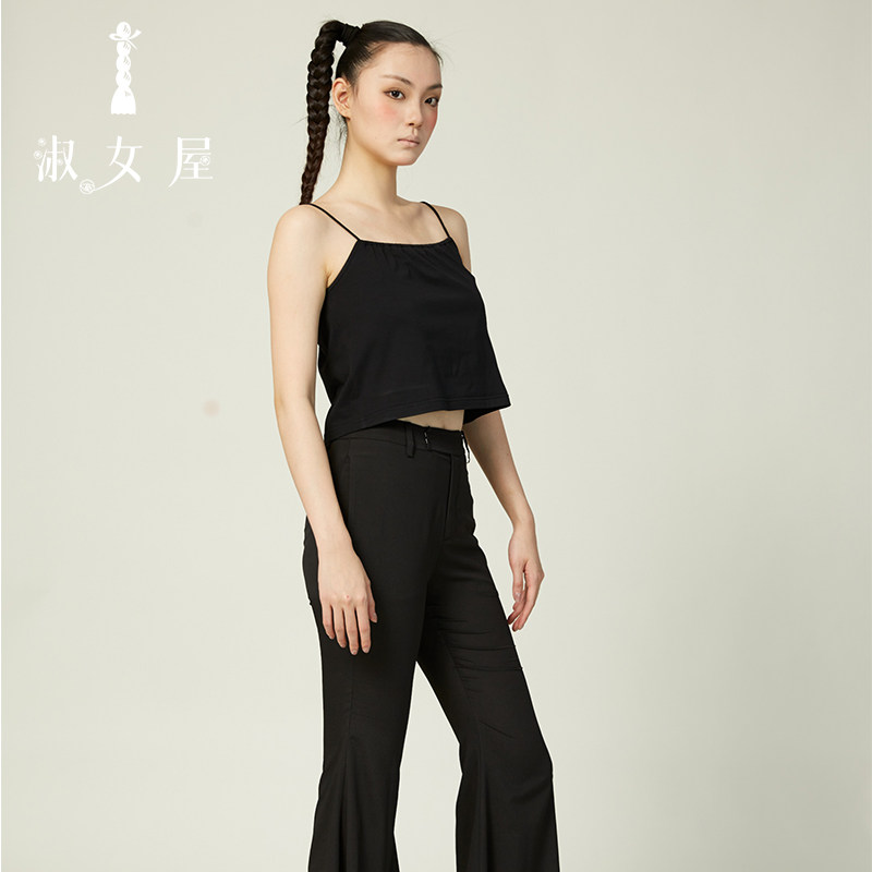 淑女屋官方旗舰店黑色舞会针织短吊带日常时尚 百搭棉休闲气质