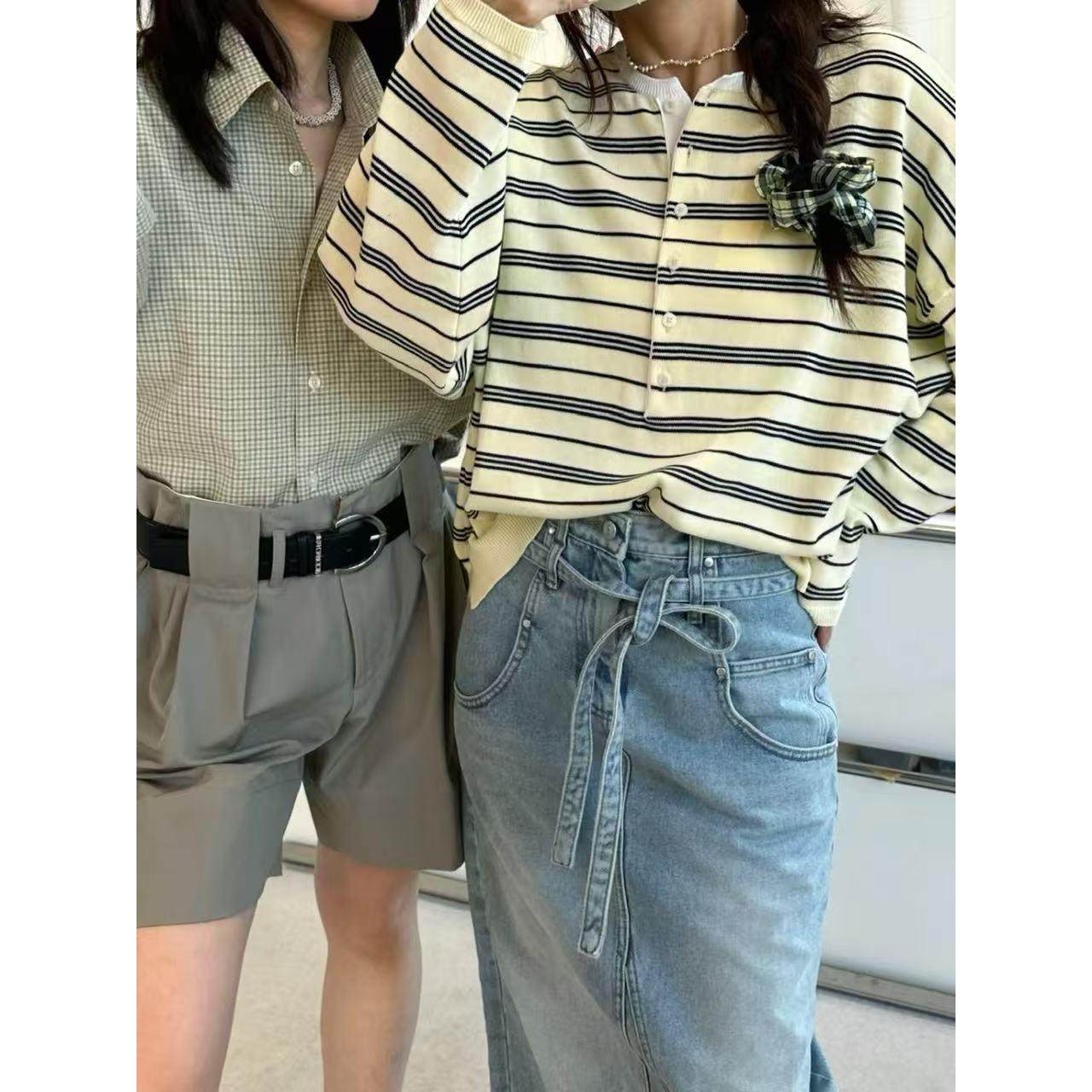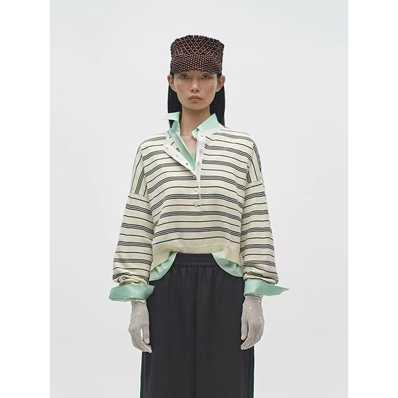 RTIMFD cleanfit宽松 老钱风深V领假两件毛衣氛围感休闲纽扣针织衫