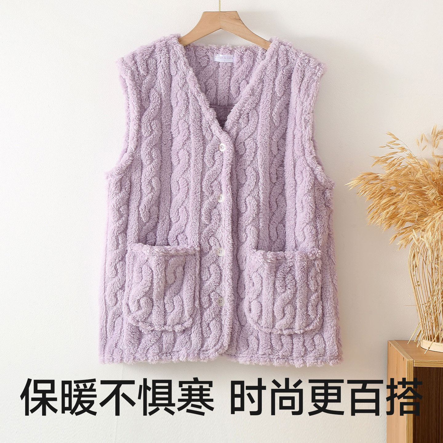 调性豹纹 小耳出品 不起球好打理 萣染棉线 V领套头马甲女 好穿