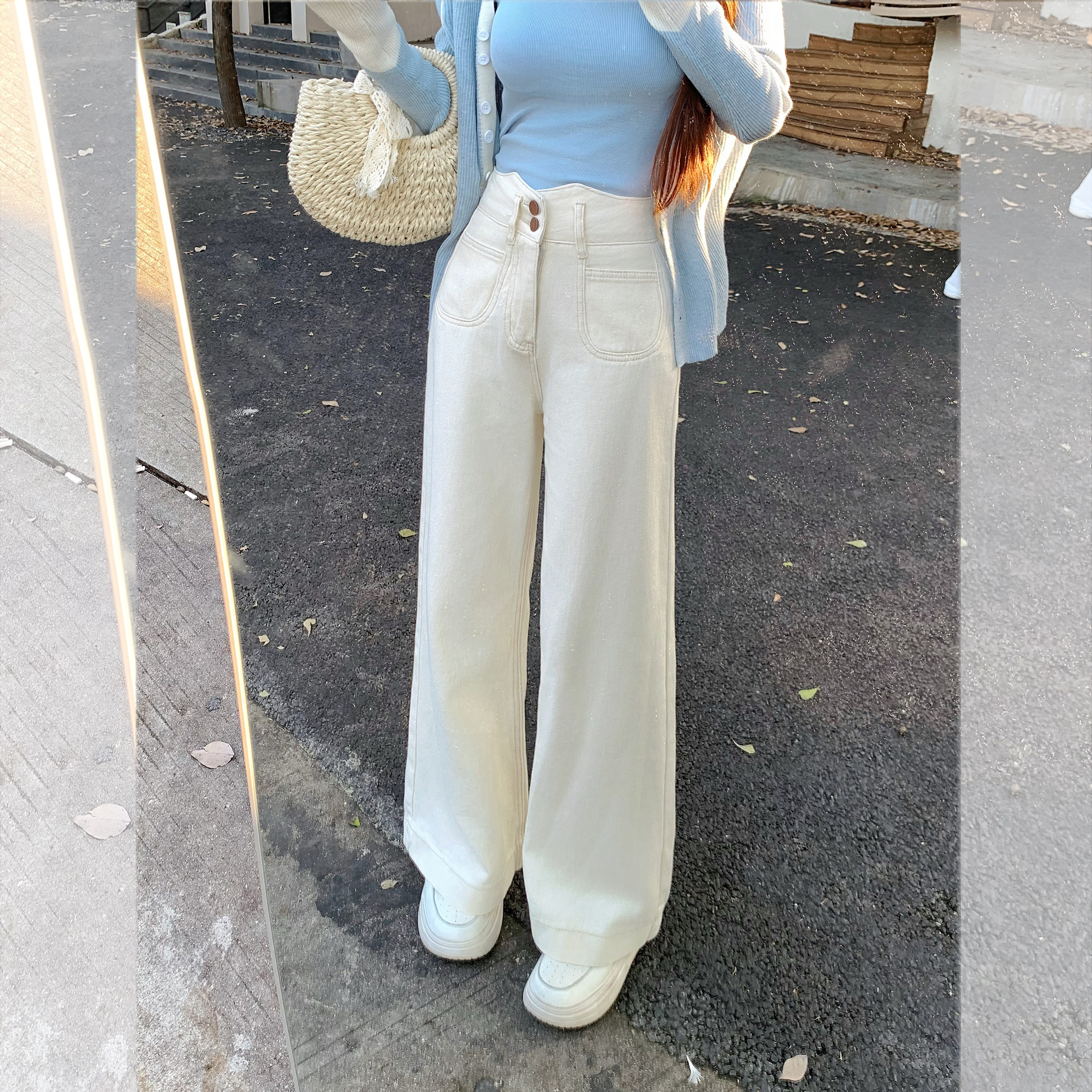百搭高腰直筒阔腿宽松牛仔裤 型超好看韩版 女 白色版 钟菲菲2025新款