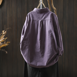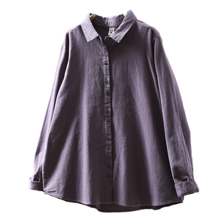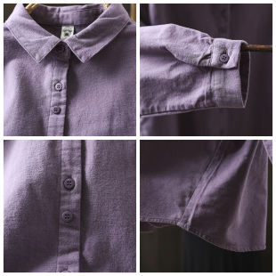 纯棉长袖 春装 磨毛纯色翻领衬衣 女2026新款 韩系简约通勤设计感衬衫