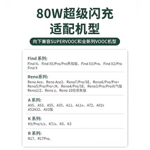 80W适用于oppoR17findx5 typec数据线快去 6手机Reno5pro6充电器typec数据线100W超级闪充oppoNove8充电头套装